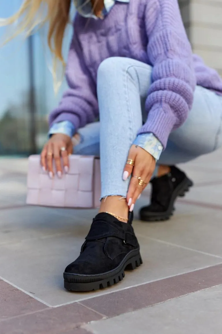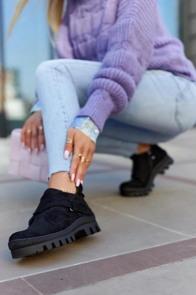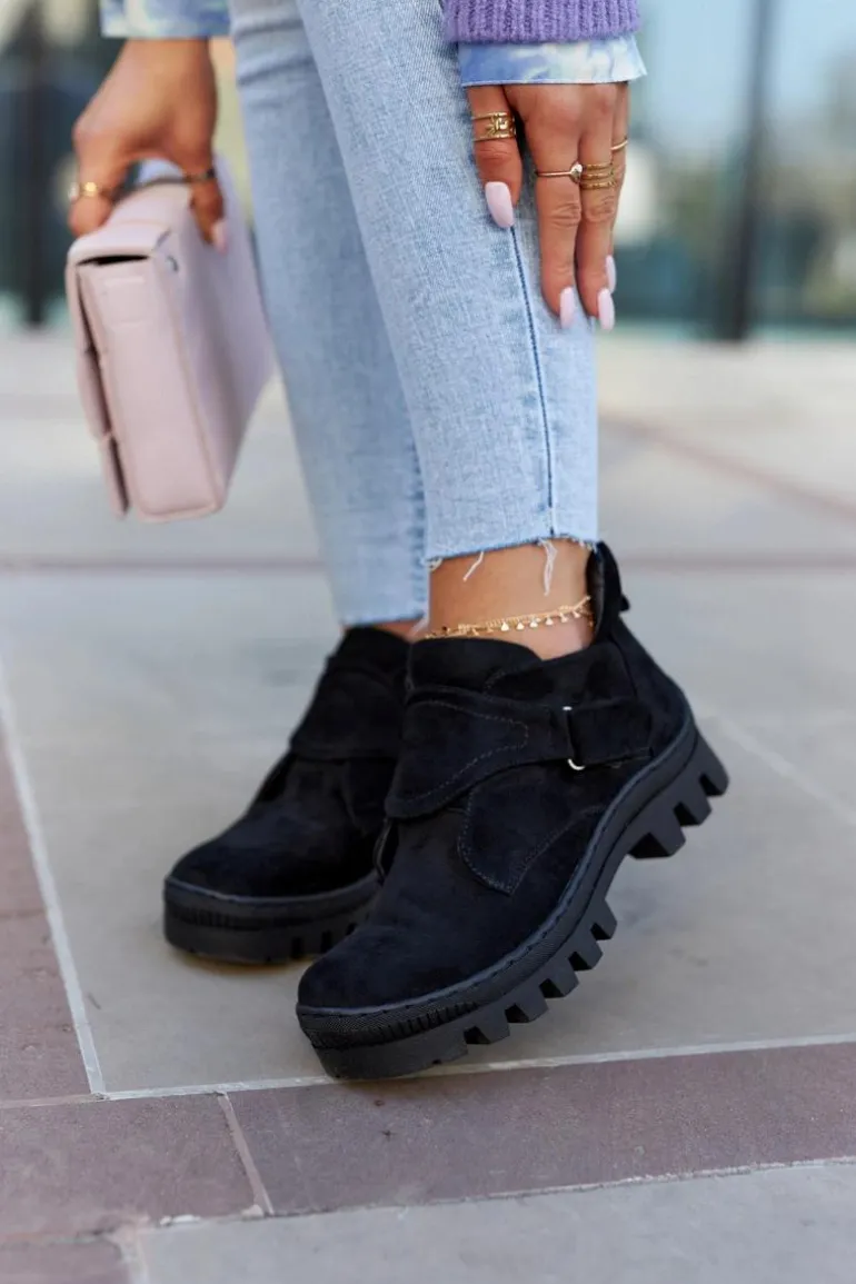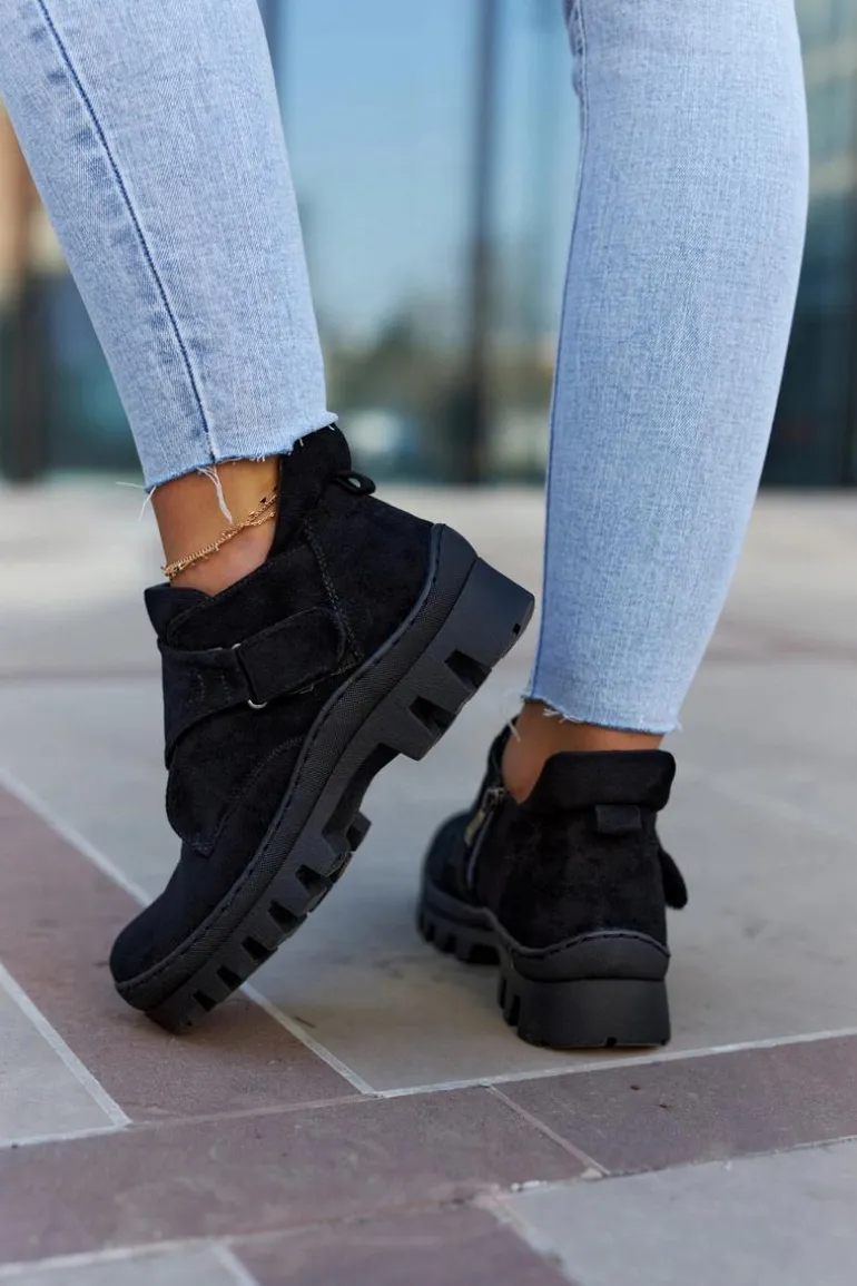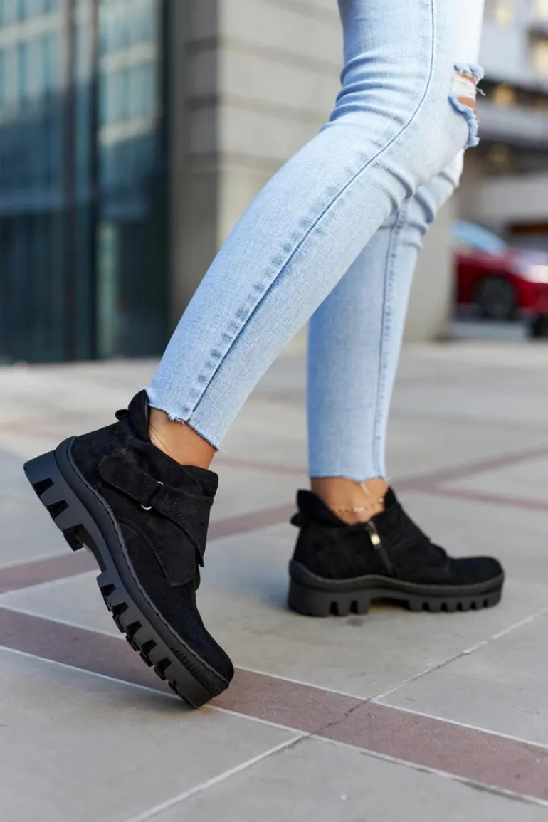 Zamszowe Wiosenne Botki Trapery Na Suwak Czarne Remgate