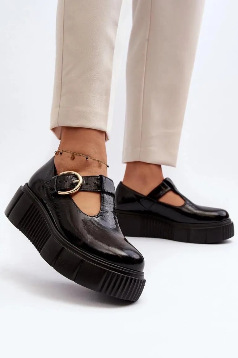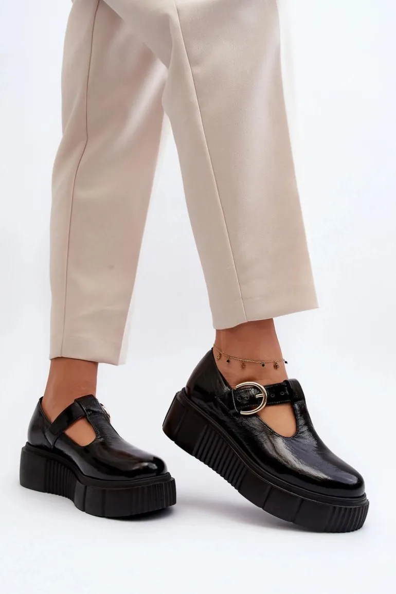 Modne półbuty damskie posiadają masywną platformę ze żłobieniami po bokach. Cholewka przed kostkę została wykonana z naturalnej skóry. Półbuty te posiadają usztywniany zapiętek. Zapinane z boku cholewki na klamrę z regulowanym paskiem. Ten model świetnie podkreśli Twoje stylizacje! Musisz go mieć! Przy wyborze rozmiaru prosimy sugerować się tabelą rozmiarów.
