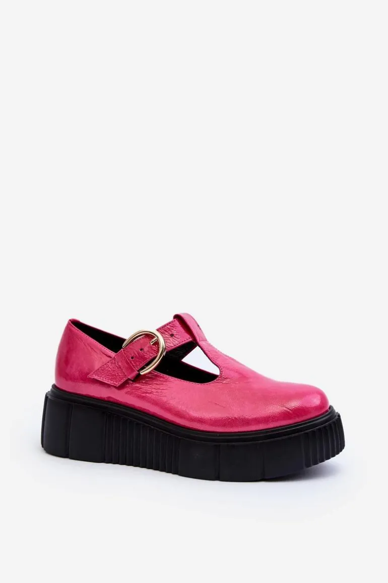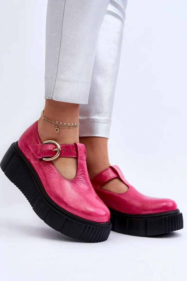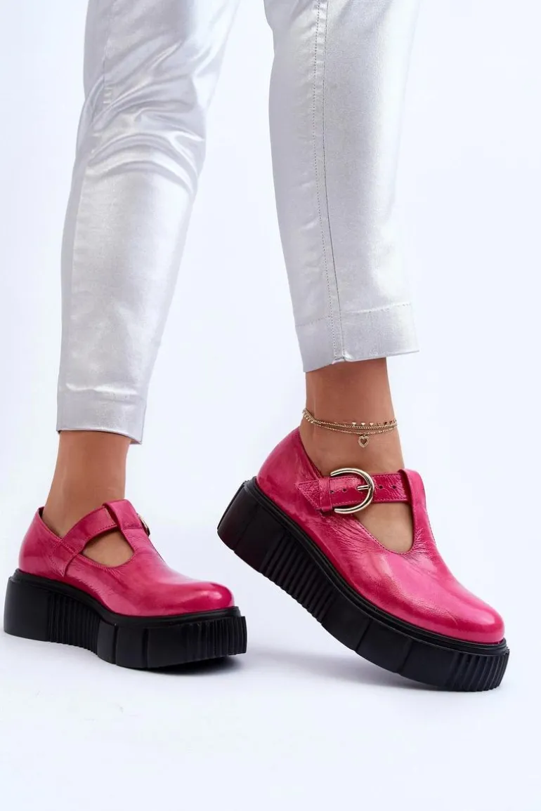 Modne półbuty damskie posiadają masywną platformę ze żłobieniami po bokach. Cholewka przed kostkę została wykonana z naturalnej skóry. Półbuty te posiadają usztywniany zapiętek. Zapinane z boku cholewki na klamrę z regulowanym paskiem. Ten model świetnie podkreśli Twoje stylizacje! Musisz go mieć! Przy wyborze rozmiaru prosimy sugerować się tabelą rozmiarów.