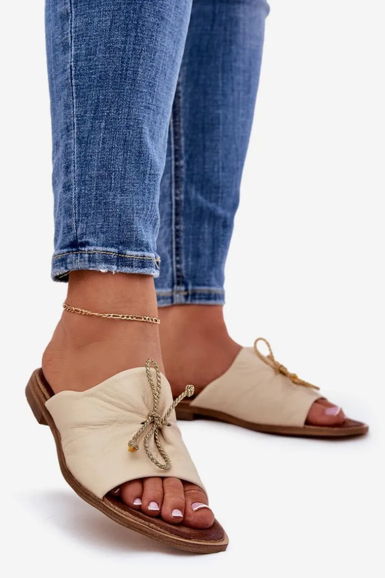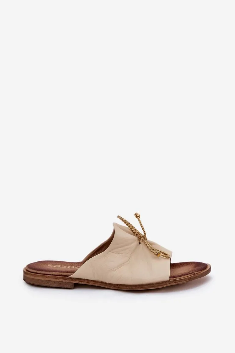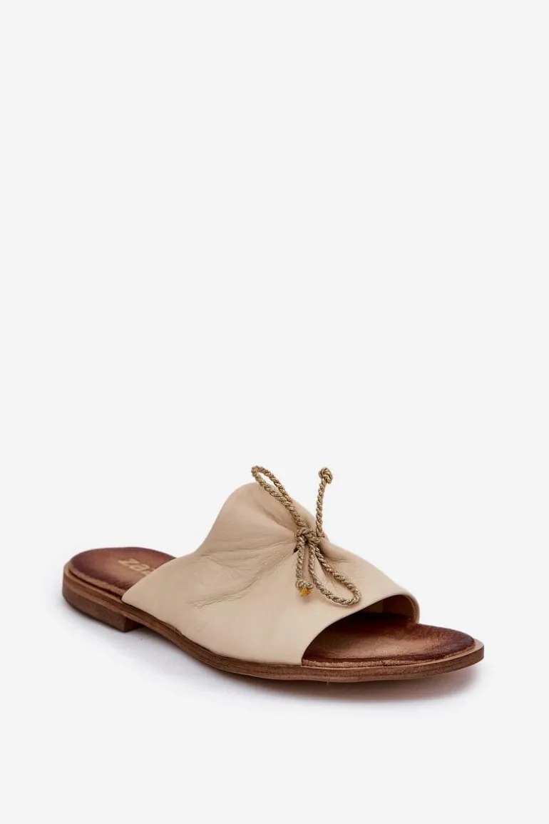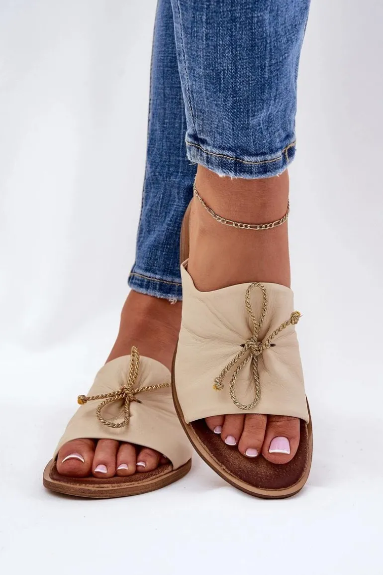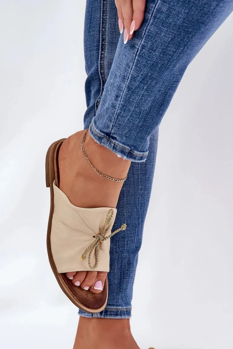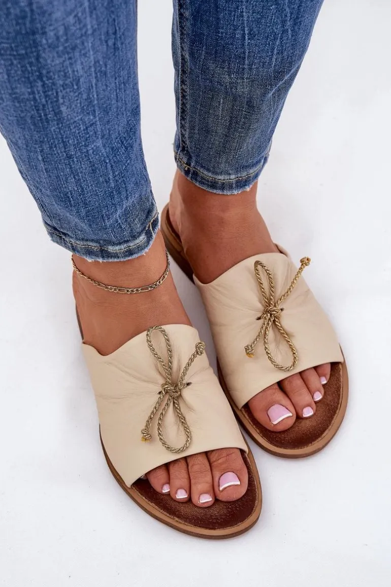 Wygodne klapki ozdobione modnym, plecionym sznureczkiem. Delikatne marszczenie dodaje tym klapkom subtelnego wyglądu. Buty wykonane są w całości ze skóry. Posiadają sztywną, wykonaną z tworzywa sztucznego podeszwę. Miękka wkładka zapewni komfort nawet w upalne dni! Koniecznie sprawdź całą naszą kolekcję damskich klapek! Przy wyborze rozmiaru prosimy sugerować się tabelą rozmiarów.