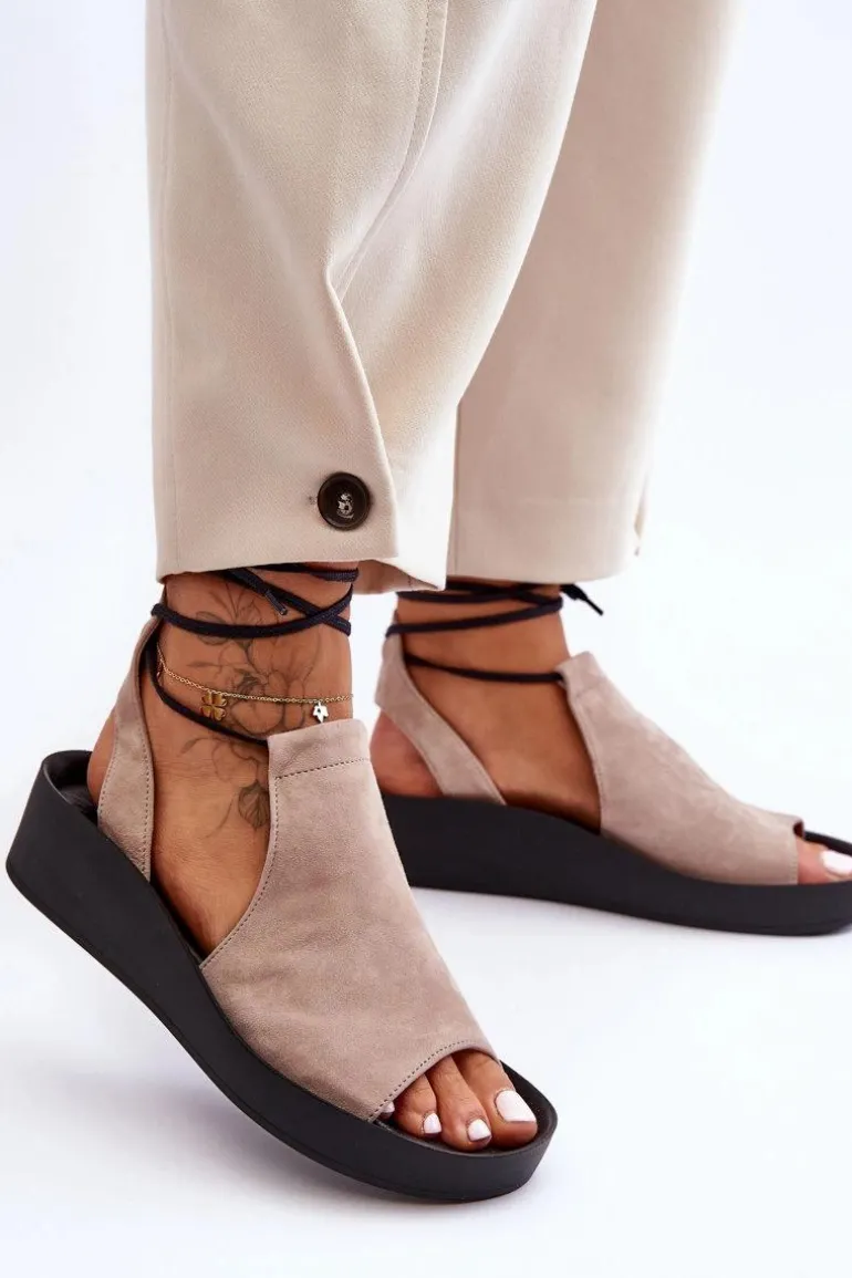 Niezwykle wygodne i modne sandałki damskie zostały wykonane z naturalnej skóry. Model wiązany, z cholewką za kostkę. Sandałki posiadają miękką, skórzaną wkładkę. Sandały osadzono na platformie oraz niewysokim koturnie. Ten fason z pewnością przypadnie Ci do gustu! Przy wyborze rozmiaru prosimy kierować się tabelą rozmiarów.