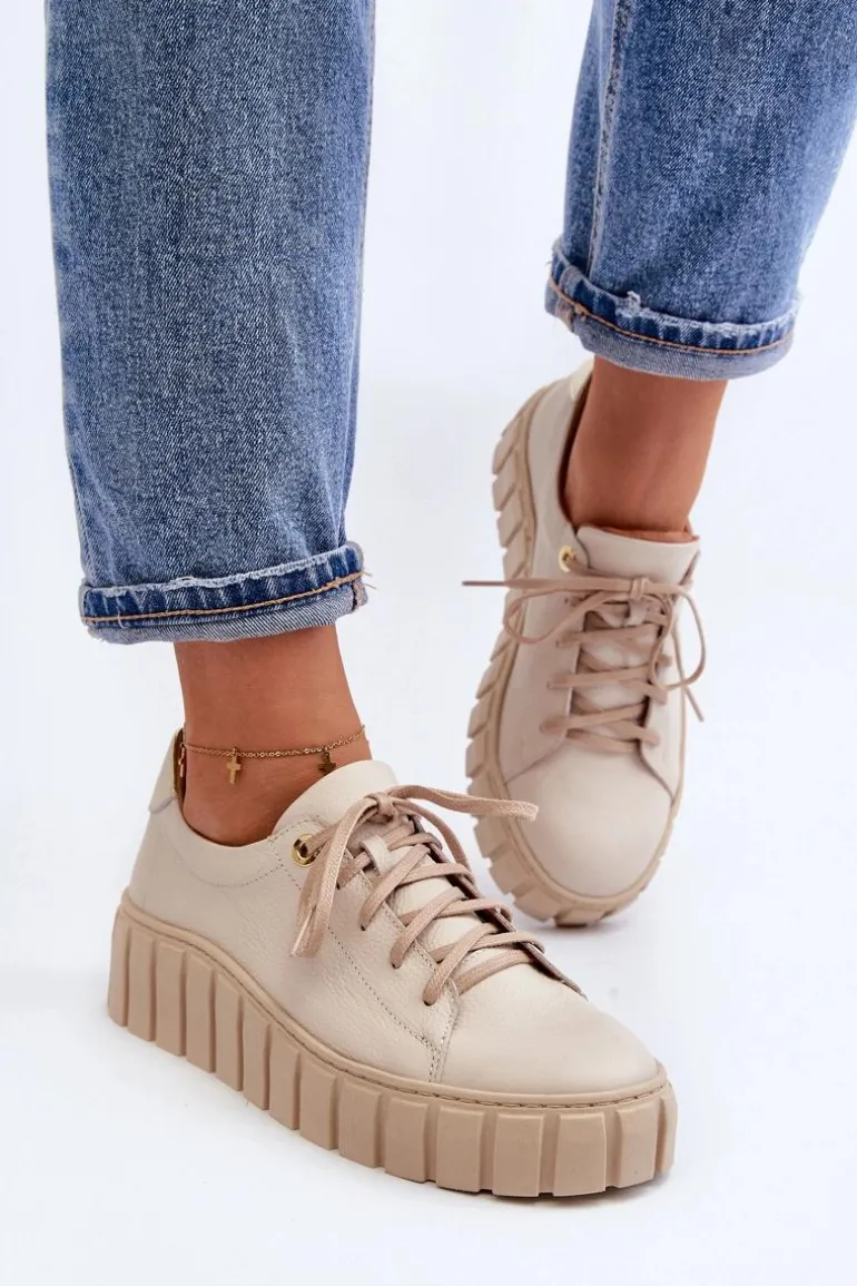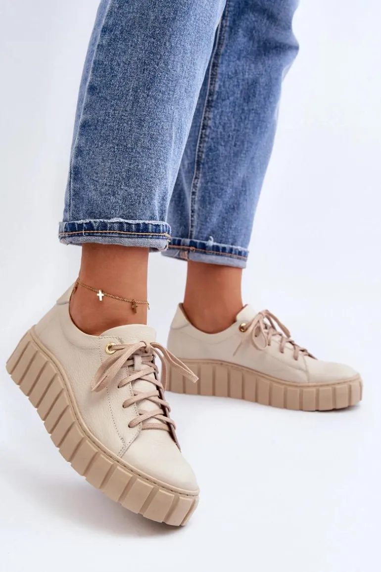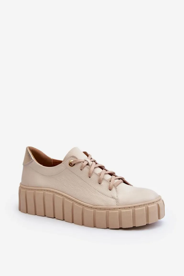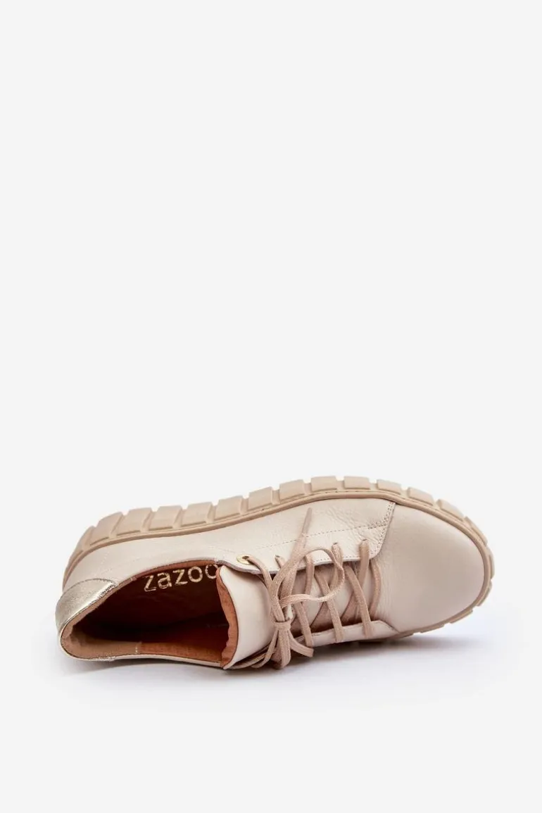 Półbuty damskie wykonane ze skóry naturalnej. Osadzone na grubej podeszwie z gumowego tworzywa. Model klasycznie sznurowany. Noski zaokrąglone. Miękka wkładka ze skóry naturalnej zapewni komfort podczas użytkowania. Idealne do wielu stylizacji. Koniecznie powinnaś je mieć! Przy wyborze rozmiaru prosimy sugerować się tabelą rozmiarów.