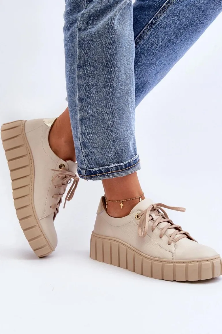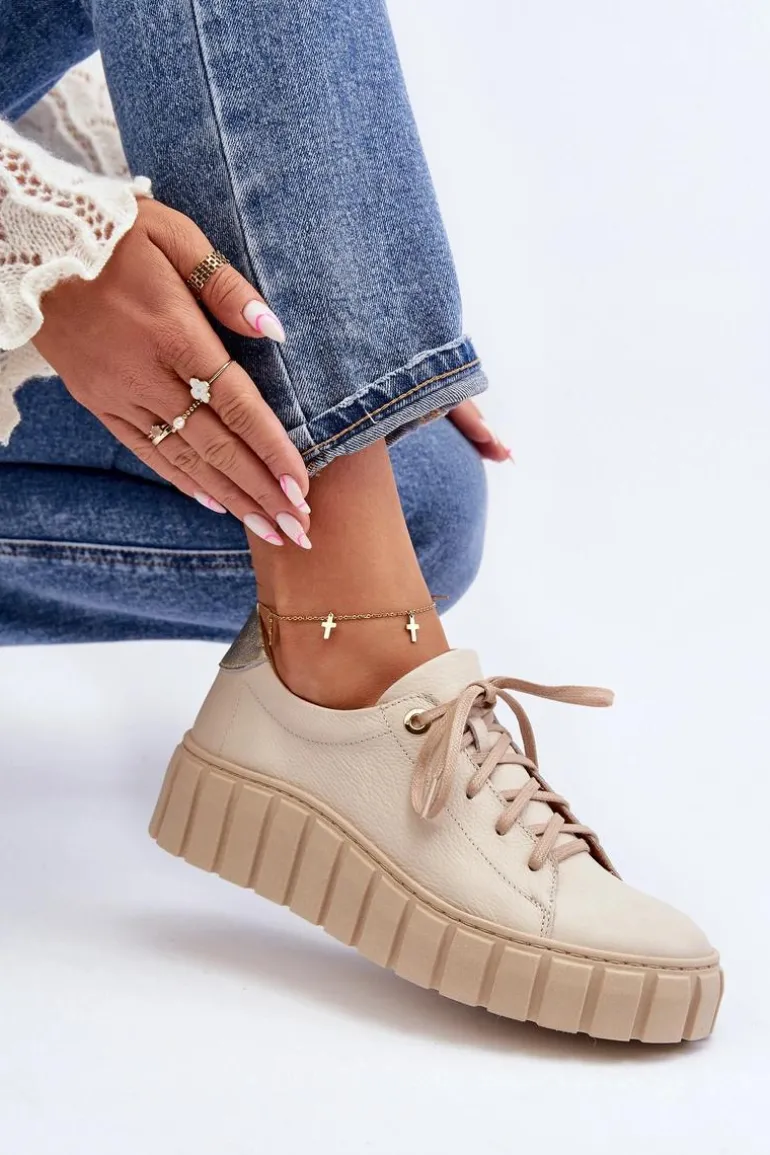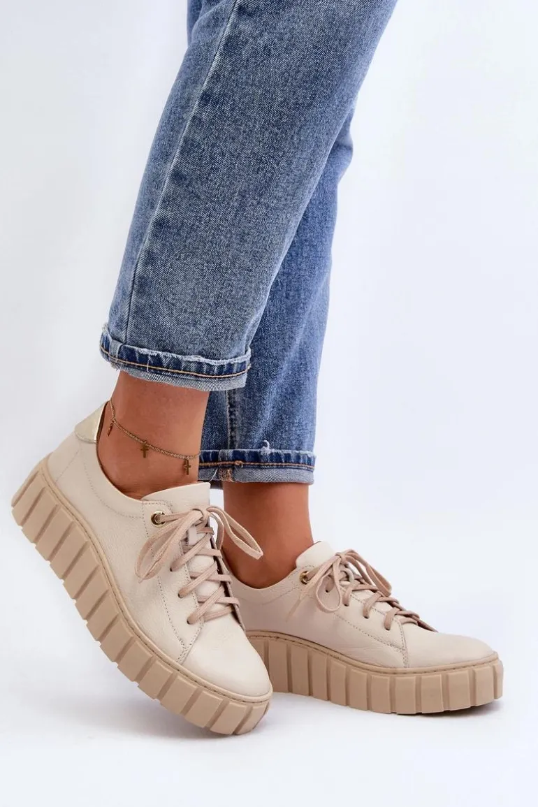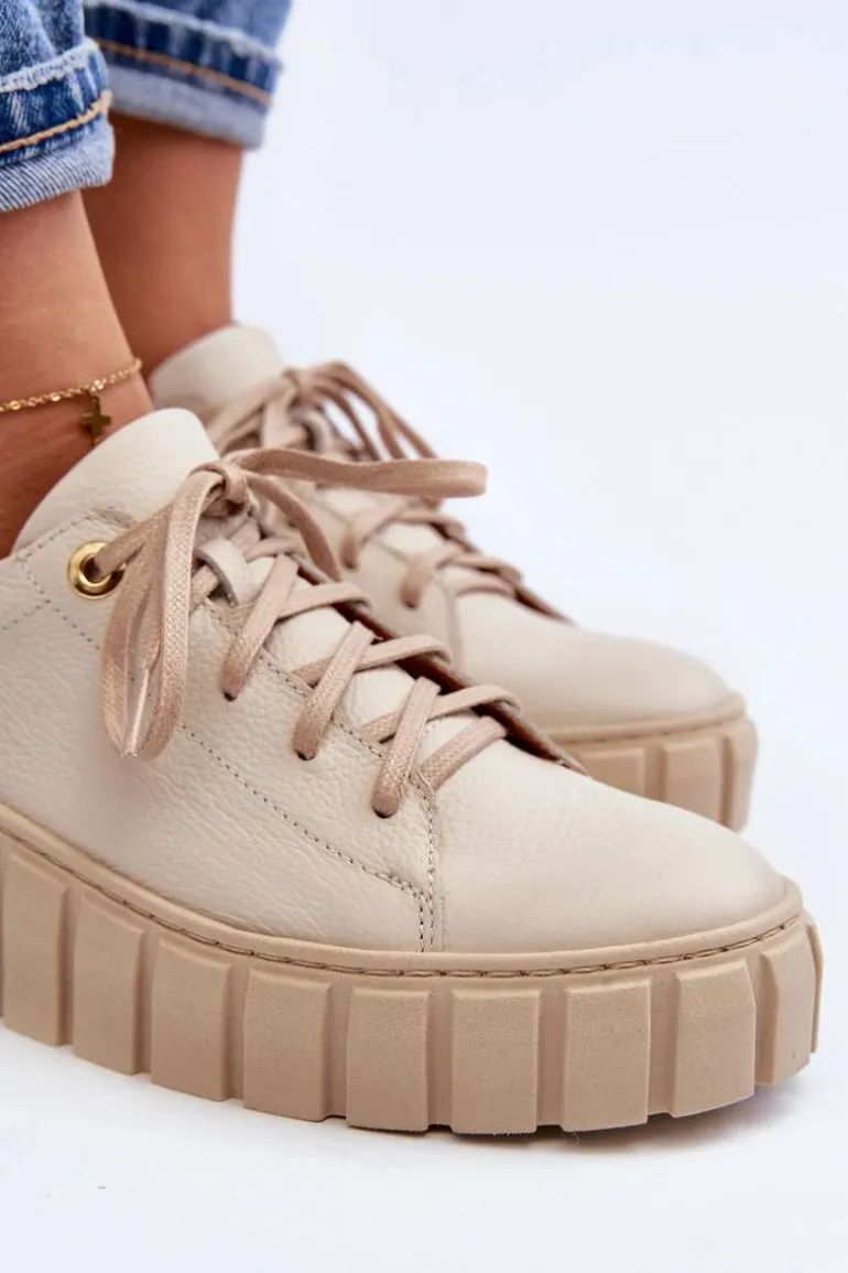 Półbuty damskie wykonane ze skóry naturalnej. Osadzone na grubej podeszwie z gumowego tworzywa. Model klasycznie sznurowany. Noski zaokrąglone. Miękka wkładka ze skóry naturalnej zapewni komfort podczas użytkowania. Idealne do wielu stylizacji. Koniecznie powinnaś je mieć! Przy wyborze rozmiaru prosimy sugerować się tabelą rozmiarów.