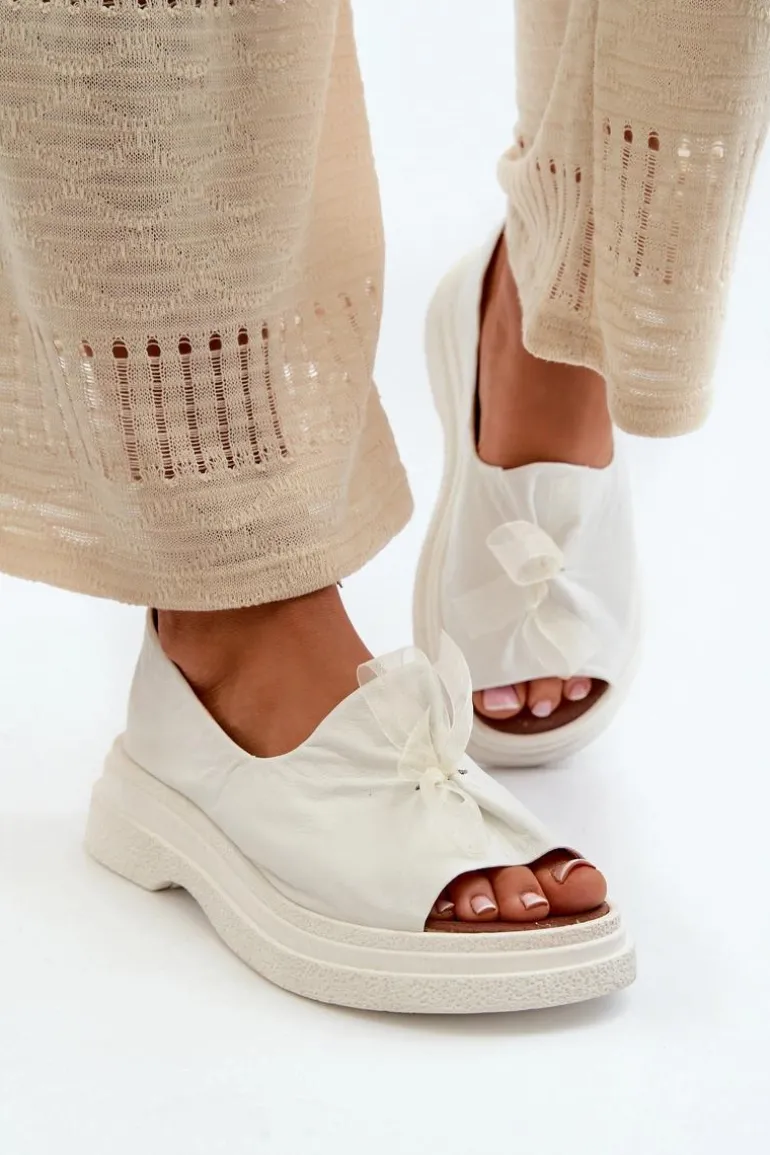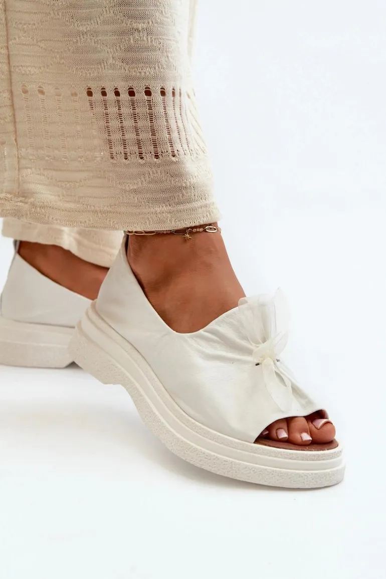 Damskie sandały wykonane ze skóry naturalnej to elegancki i komfortowy wybór na ciepłe dni. Osadzone na grubej, solidnej podeszwie, zapewniają stabilność i wygodę noszenia przez cały dzień. Miękka, skórzana wkładka dodatkowo zwiększa komfort użytkowania. Przód sandałów ozdobiony uroczą kokardką dodaje im subtelnego uroku i sprawia, że stanowią stylowy element każdej letniej stylizacji. Przy wyborze rozmiaru prosimy kierować się tabelą rozmiarów.