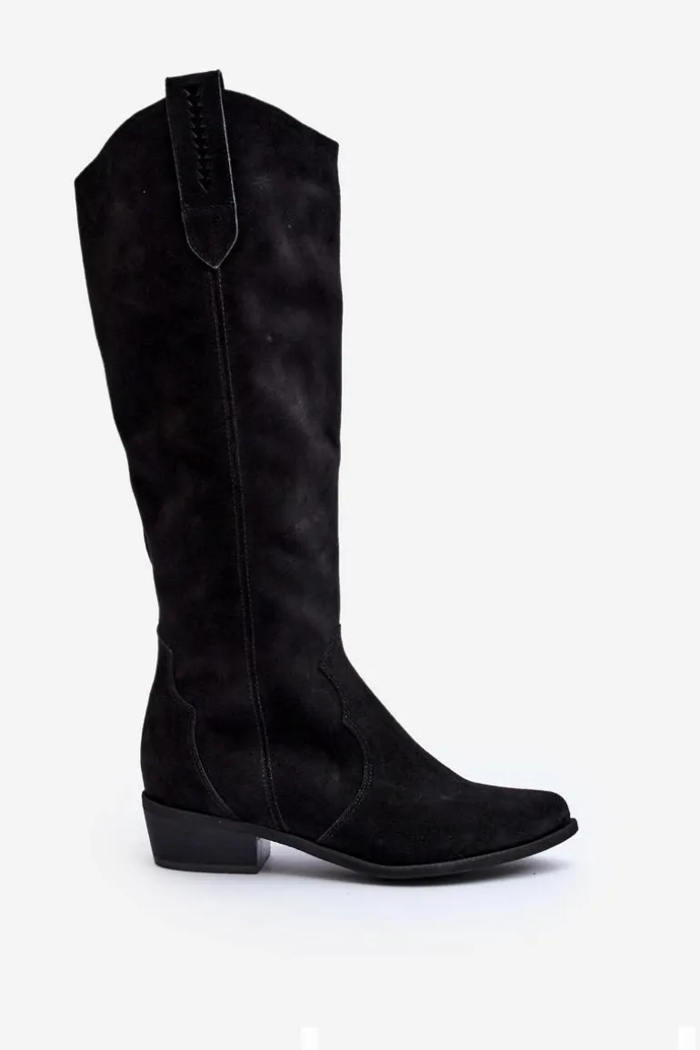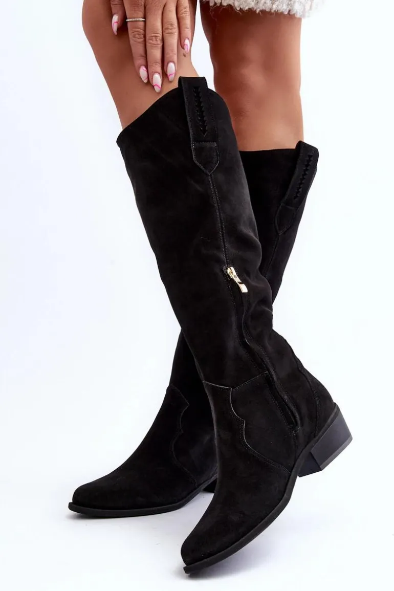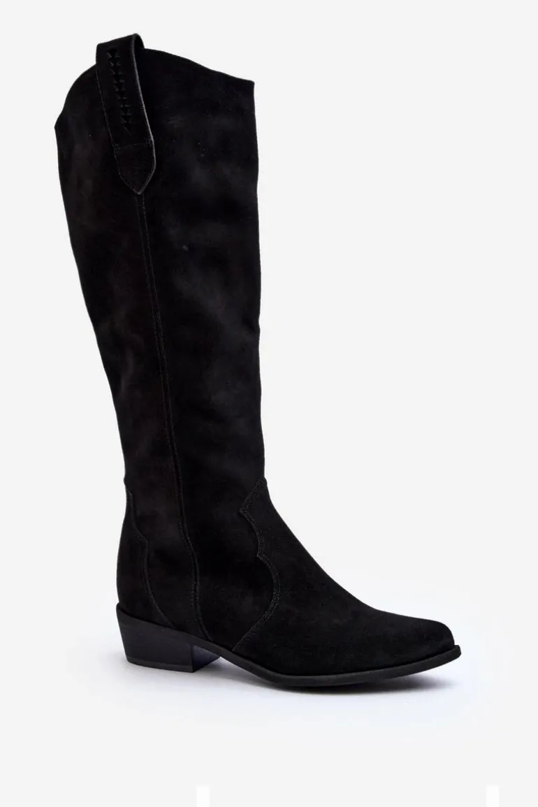 Zazoo 3427 Damskie Zamszowe Kozaki Kowbojki Czarne