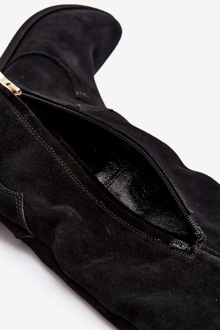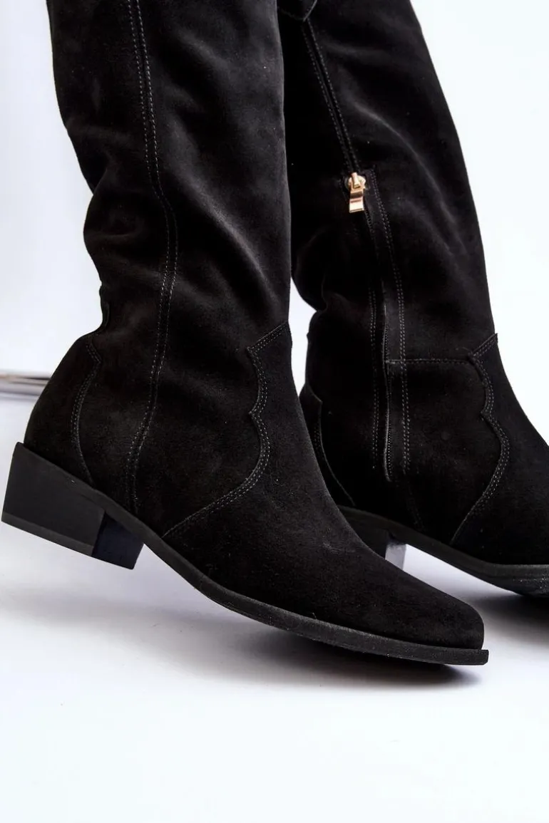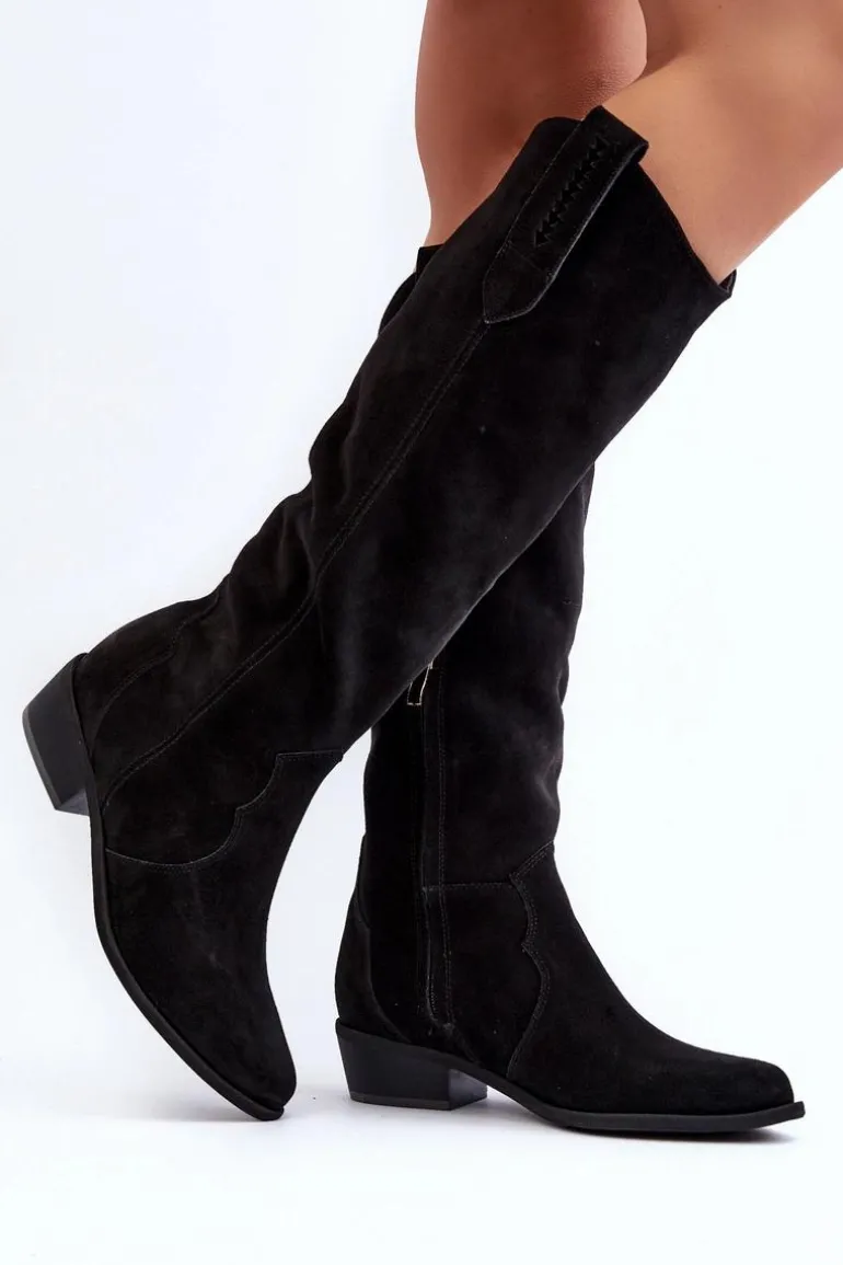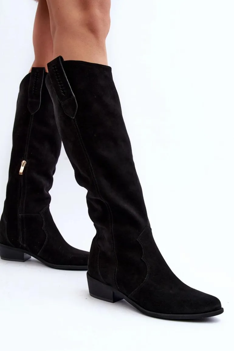 Zazoo 3427 Damskie Zamszowe Kozaki Kowbojki Czarne