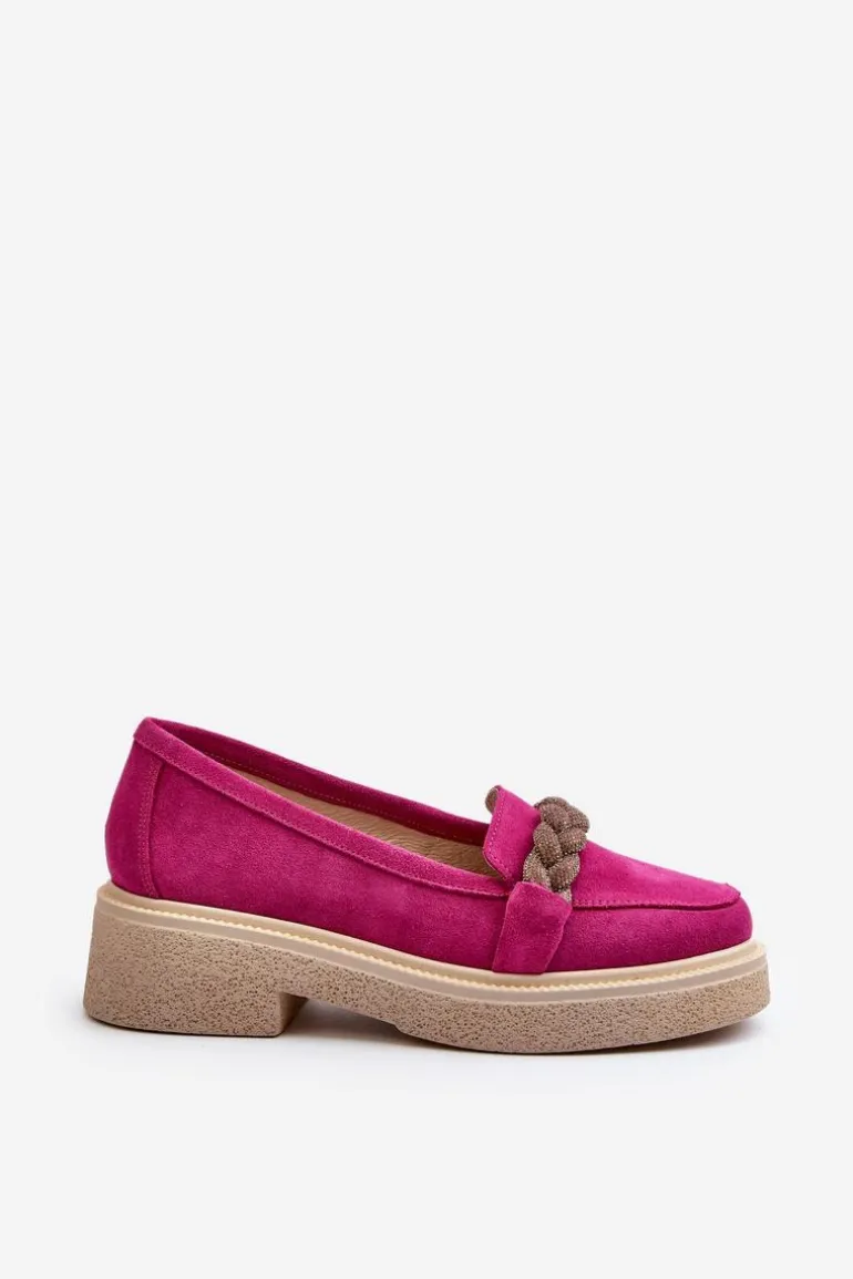 Urocze mokasyny damskie wykonane z naturalnego zamszu. Posiadają płaski obcas z delikatną platformą, co zapewnia stabilność i komfort podczas noszenia. Zaokrąglone noski dodają im subtelnego uroku. Profilowana wkładka gwarantuje wygodę podczas użytkowania. Dodatkowy wdzięk nadają im małe cyrkonie umieszczone na paseczku z przodu. Koniecznie powinnaś je mieć w swojej wiosennej garderobie! Przy wyborze rozmiaru prosimy sugerować się tabelą rozmiarów.