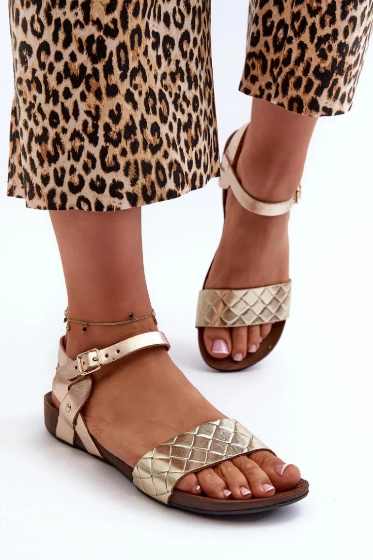 Płaskie sandały damskie wykonane z wysokiej jakości skóry naturalnej, co zapewnia trwałość i komfort noszenia. Klasyczny design sprawia, że są one doskonałym wyborem na co dzień. Zapinane na regulowany pasek ze sprzączką, gwarantują precyzyjne dopasowanie do stopy, co przekłada się na jeszcze większy komfort. Te sandały są nie tylko stylowe, ale także wygodne, doskonale sprawdzające się podczas letnich aktywności i spacerów. Przy wyborze rozmiaru prosimy kierować się tabelą rozmiarów.
