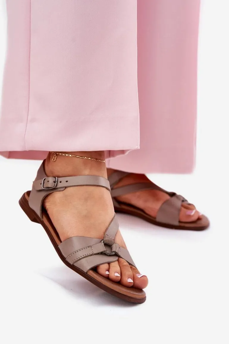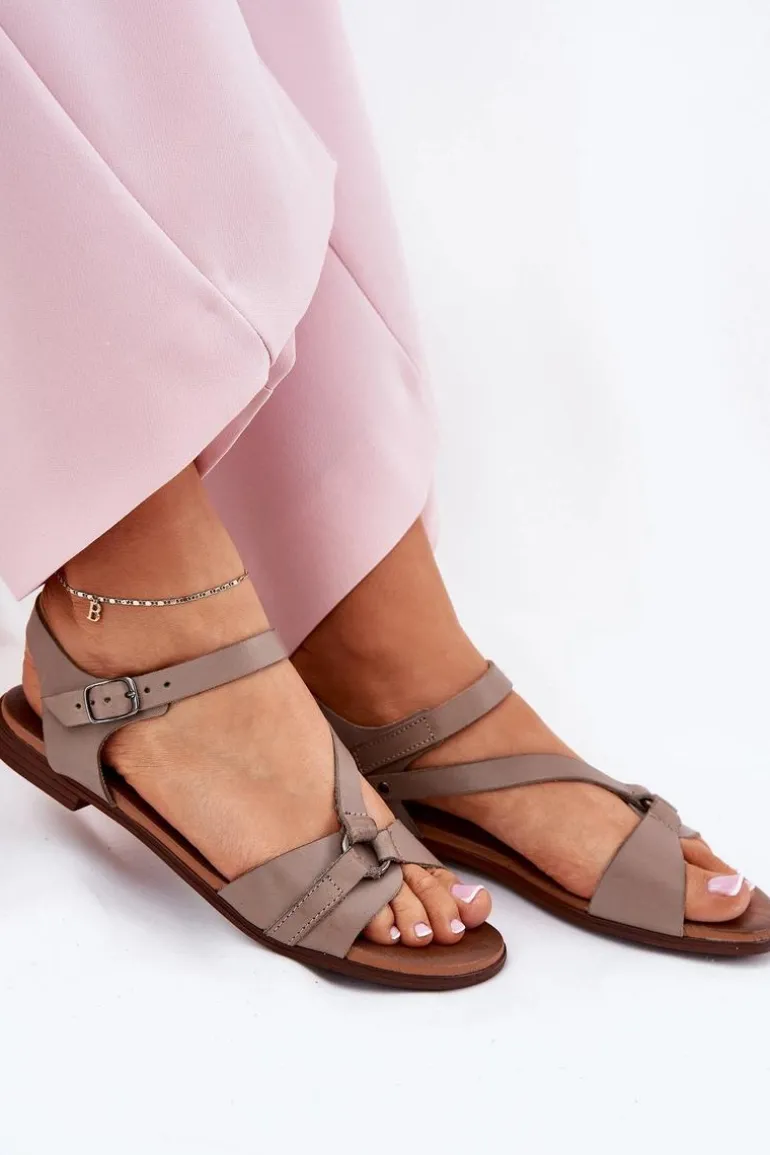 Sandały damskie wykonane ze skóry naturalnej. Osadzone na płaskim obcasie. Zapinane na regulowany pasek ze sprzączką. Skórzana wkładka zapewni wygodę podczas użytkowania. Idealne na upalne dni. Koniecznie musisz je mieć w swojej letniej garderobie! Przy wyborze rozmiaru prosimy kierować się tabelą rozmiarów.