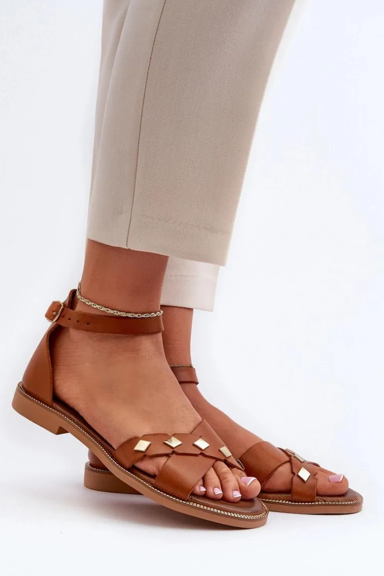 Sandały damskie z płaską podeszwą, wykonane z naturalnej skóry, to wyjątkowo komfortowe i stylowe obuwie na letnie dni. Z przodu posiadają dwa przeplatające się paski. Zapinane na regulowany pasek ze sprzączką, zapewniają idealne dopasowanie do stopy. Te sandały są nie tylko praktyczne, ale także nadają elegancji każdej letniej stylizacji. Przy wyborze rozmiaru prosimy kierować się tabelą rozmiarów.
