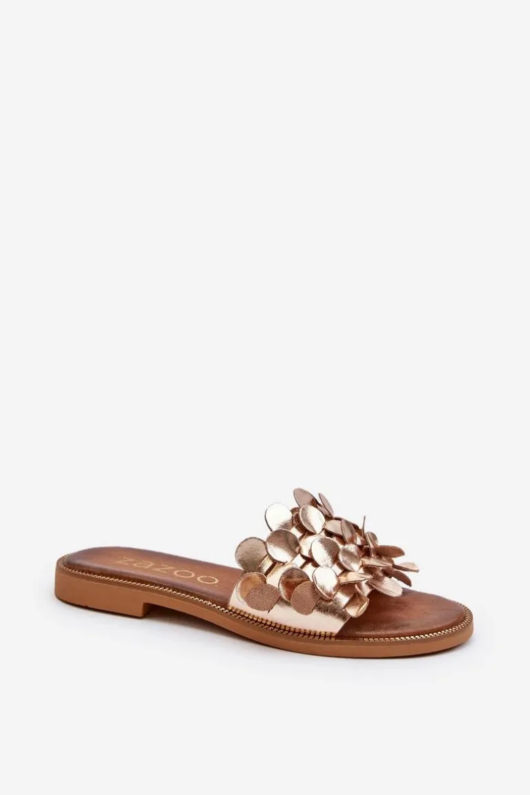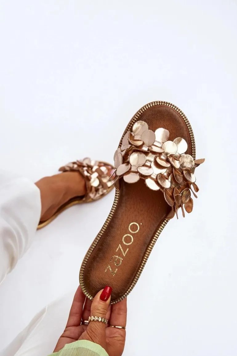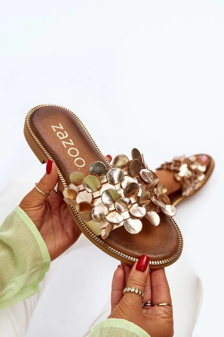 Zazoo 40381 Damskie Skórzane Klapki Na Płaskim Obcasie Złote