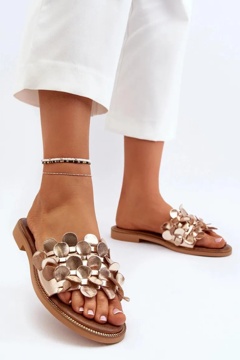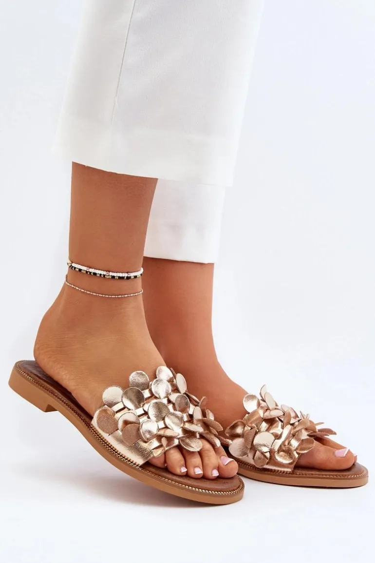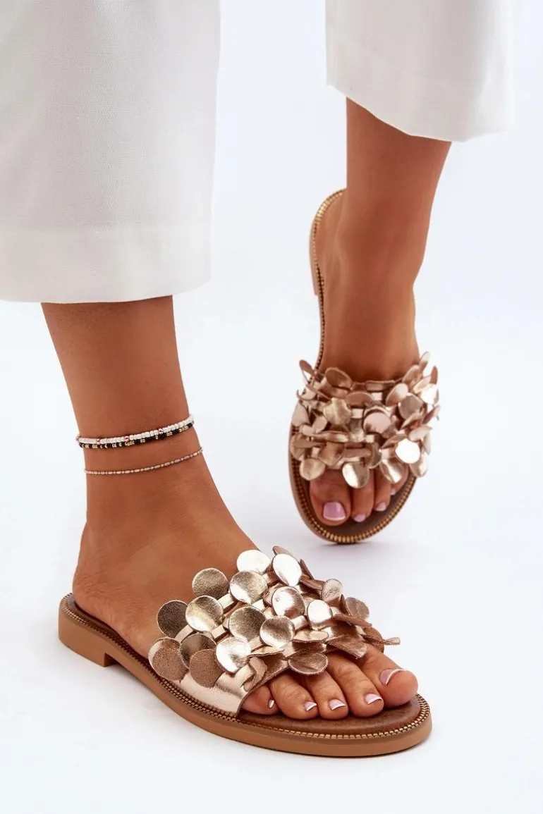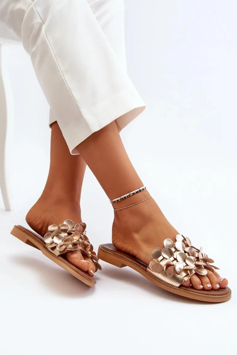 Zazoo 40381 Damskie Skórzane Klapki Na Płaskim Obcasie Złote