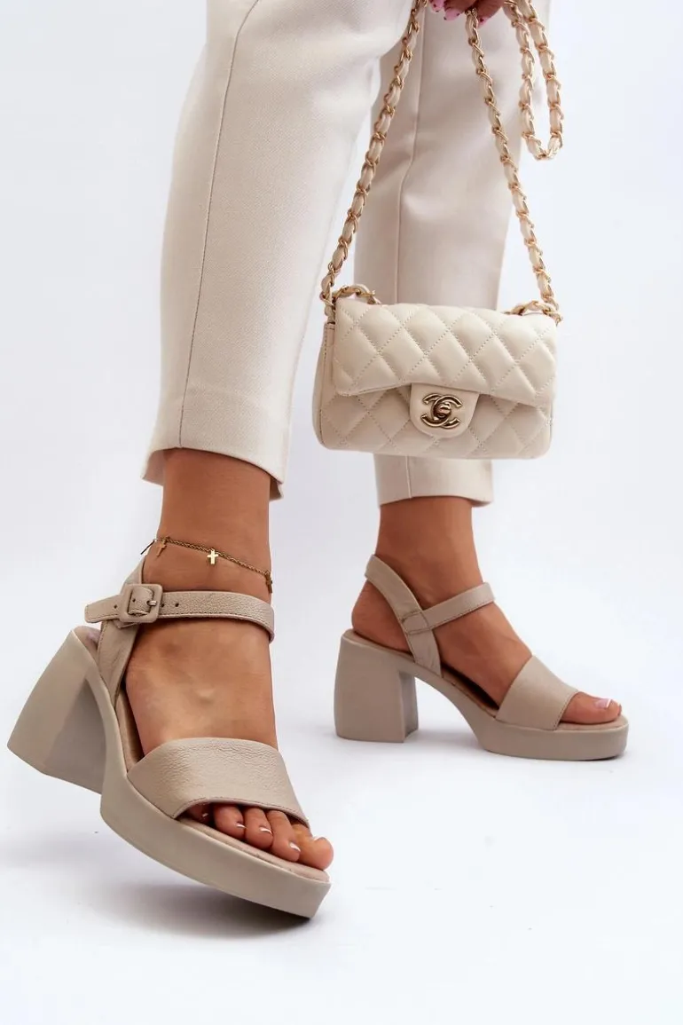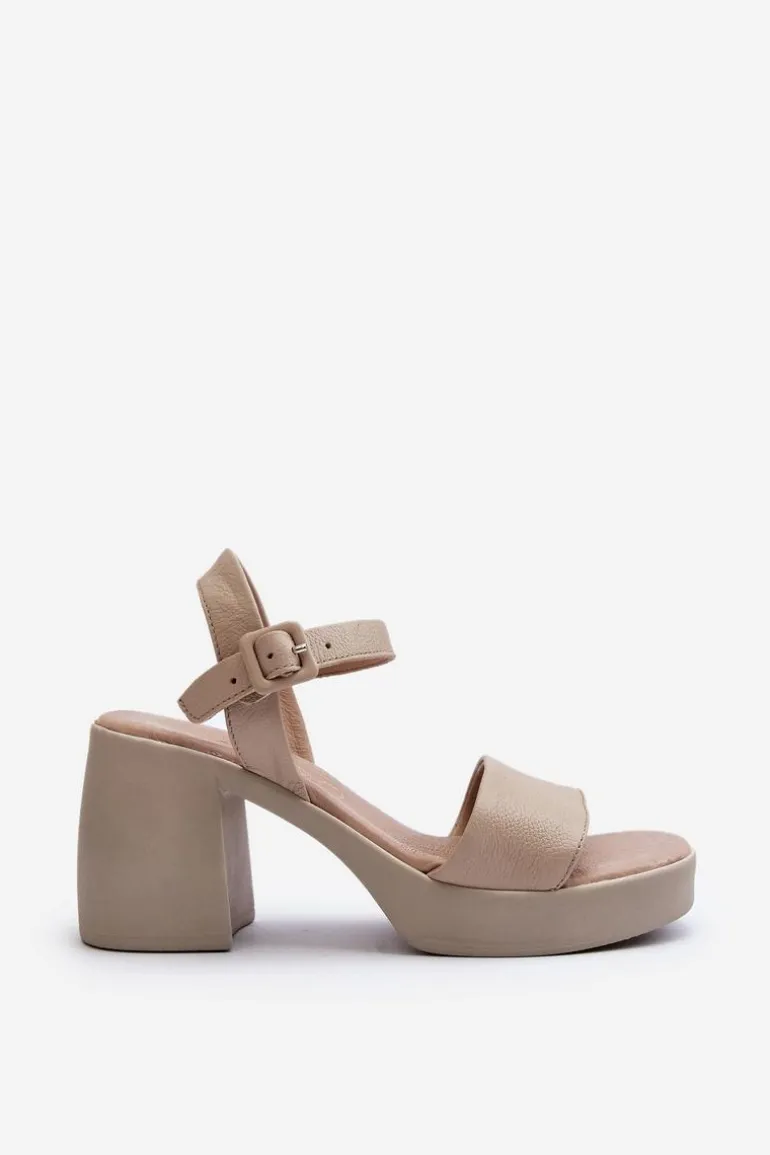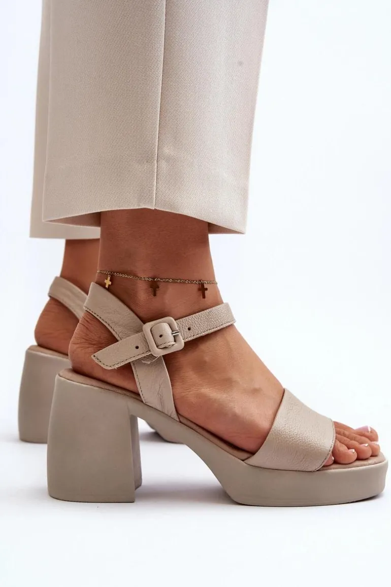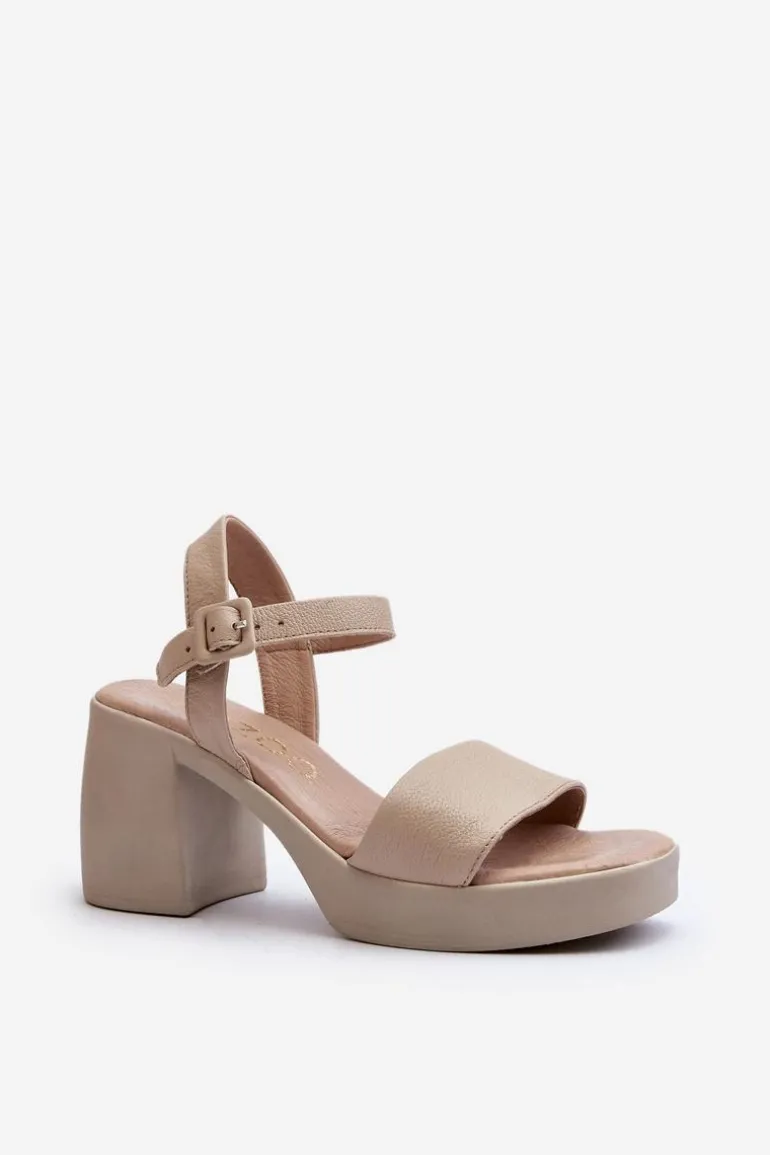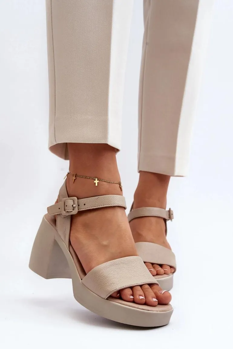 Damskie sandały wykonane z wysokiej jakości skóry naturalnej. Osadzone na masywnym obcasie w postaci klocka. Model ten zapinany jest na regulowany pasek ze sprzączką. Miękka, skórzana wkładka zapewni wygodę podczas użytkowania. Idealne do letnich sukienek, spódnic oraz spodni. Koniecznie powinnaś je mieć! Przy wyborze rozmiaru prosimy sugerować się tabelą rozmiarów.