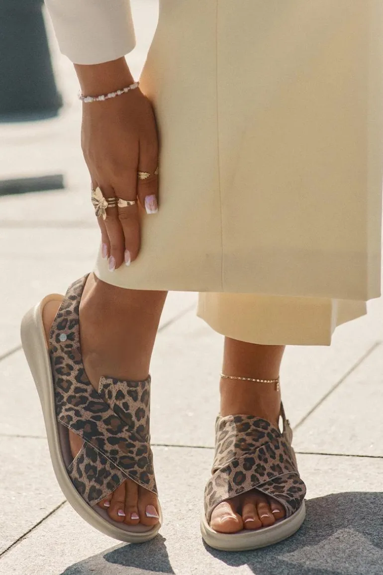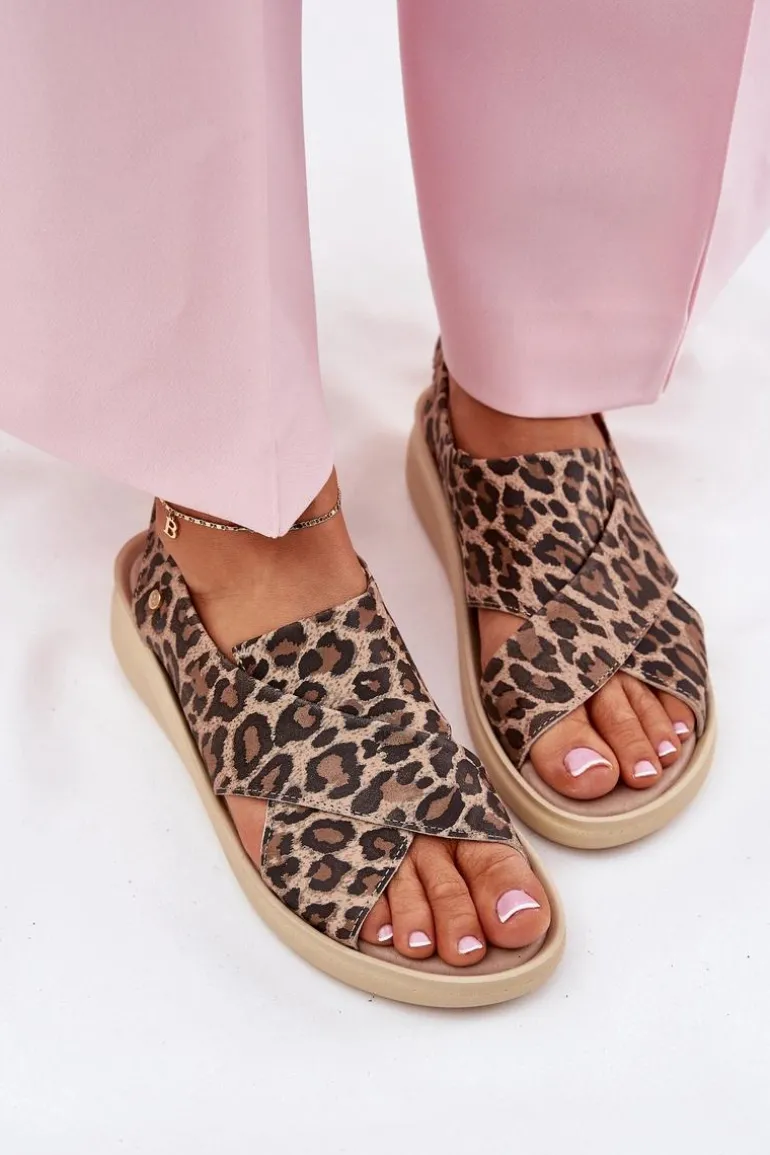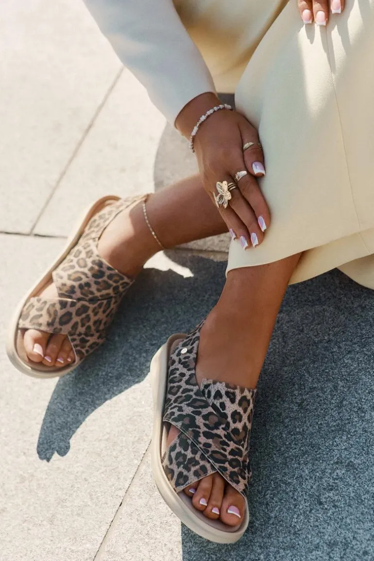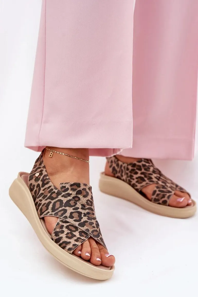 Te sandałki damskie to połączenie wygody i stylu, które z pewnością przypadnie Ci do gustu! Wykonane z naturalnej skóry, zapewniają trwałość i komfort noszenia. Model wsuwany, z dodatkową gumką. Ozdobny emblemat z boku cholewki dodaje im wyjątkowego charakteru, nadając im subtelny, elegancki akcent. Sandały zostały osadzone na platformie oraz lekkim koturnie, co nie tylko dodaje im stylowego wyglądu, ale także zapewnia stabilność i komfort podczas chodzenia. Model ten jest niezwykle praktycznym i modnym dodatkiem do letniej garderoby, idealnym zarówno na codzienne spacery, jak i na bardziej formalne okazje. Przy wyborze rozmiaru prosimy kierować się tabelą rozmiarów.