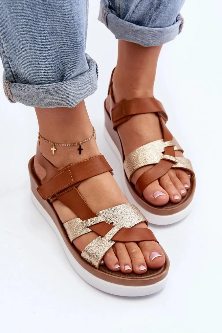 Niezwykle wygodne sandały damskie zostały wykonane z naturalnej skóry. Zapinane na rzep. Osadzone na platformie oraz lekkim koturnie. Miękka, skórzana wkładka zapewni komfort podczas noszenia w upalne dni. Fason ten z pewnością przypadnie Ci do gustu! Przy wyborze rozmiaru prosimy kierować się tabelą rozmiarów.