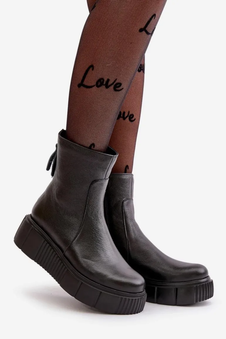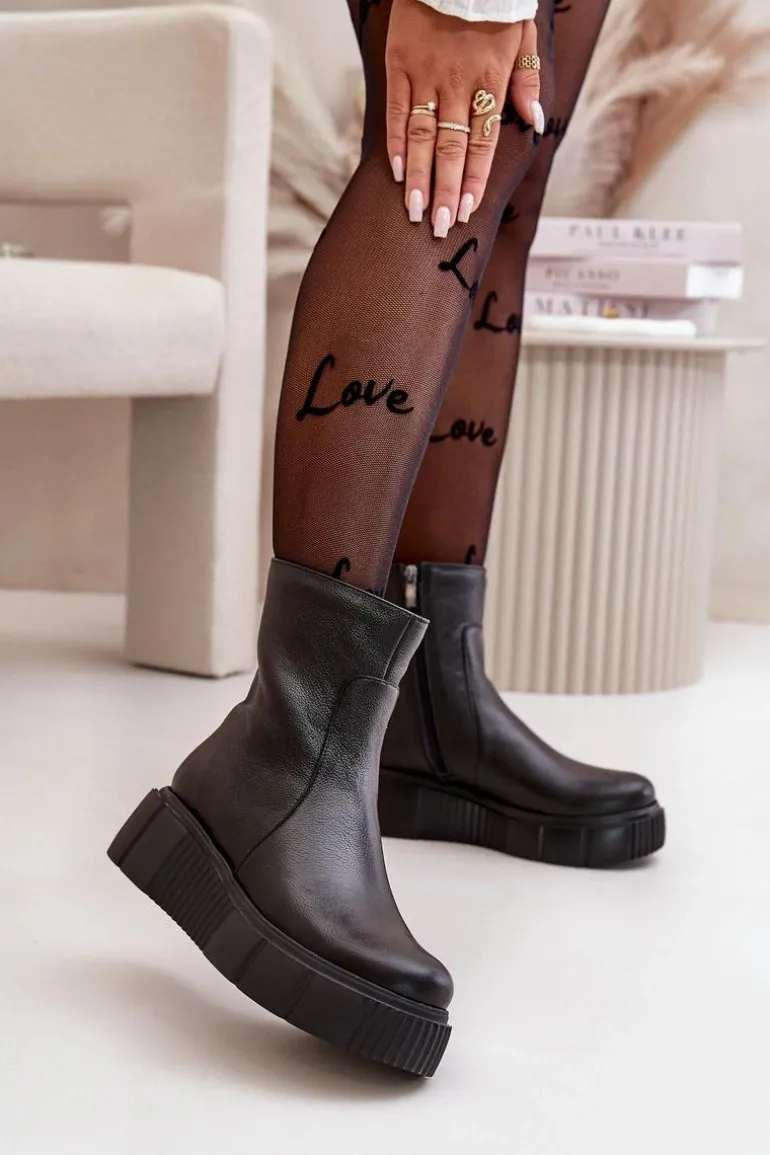 Botki damskie zostały wykonane z wysokiej jakości naturalnych skór. Osadzone na masywnej platformie z delikatnym koturnem. Zapinane z boku cholewki na suwak, natomiast suwak z tyłu jest ozdobny. Dodatkowo botki posiadają usztywniany zapiętek. Ocieplone w środku filcem. Model ten na pewno sprawdzi się w wielu jesiennych stylizacjach! Przy wyborze rozmiaru prosimy kierować się tabelą rozmiarów