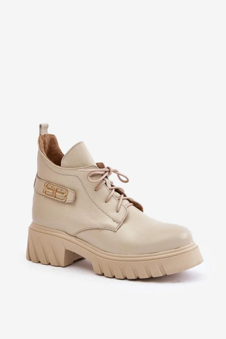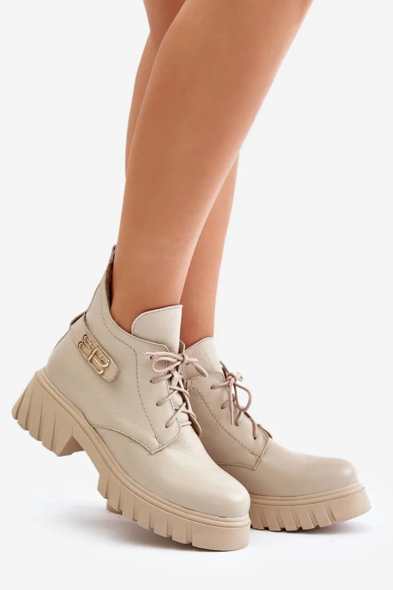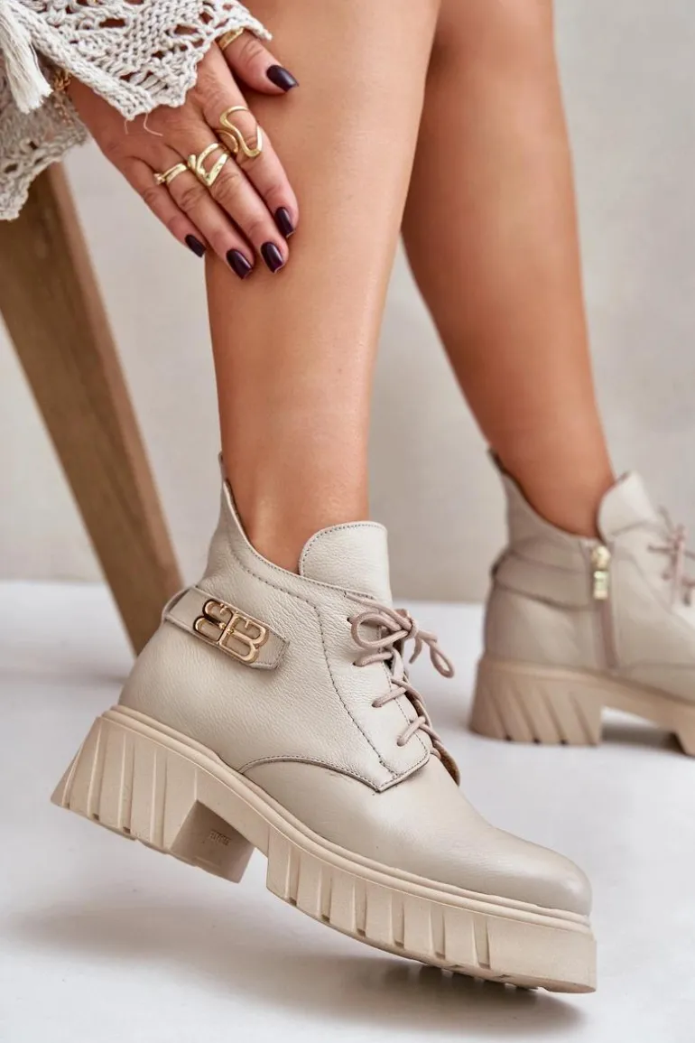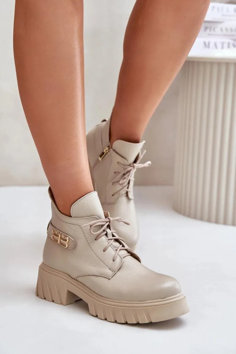 Damskie botki wykonane ze skóry naturalnej. Zapinane na zamek oraz dodatkowo posiadają sznurowanie. Noski zaokrąglone. Wnętrze zostało ocieplone miękkim filcem, który zapewnia ciepło nawet w najchłodniejsze dni. Filc nie tylko chroni przed zimnem, ale także zwiększa komfort noszenia, dzięki swojej miękkości i właściwościom izolacyjnym. To sprawia, że botki są idealnym wyborem na jesienne i zimowe miesiące, gwarantując nie tylko stylowy wygląd, ale także komfort i ochronę przed chłodem. Te botki to doskonałe połączenie klasycznego stylu i nowoczesnych rozwiązań, które sprawdzą się w różnorodnych stylizacjach, od casualowych po bardziej eleganckie. Przy wyborze rozmiaru prosimy sugerować się tabelą rozmiarów.