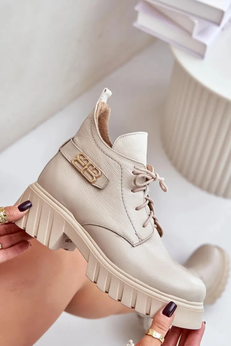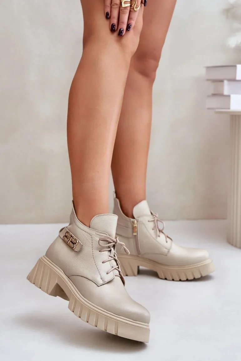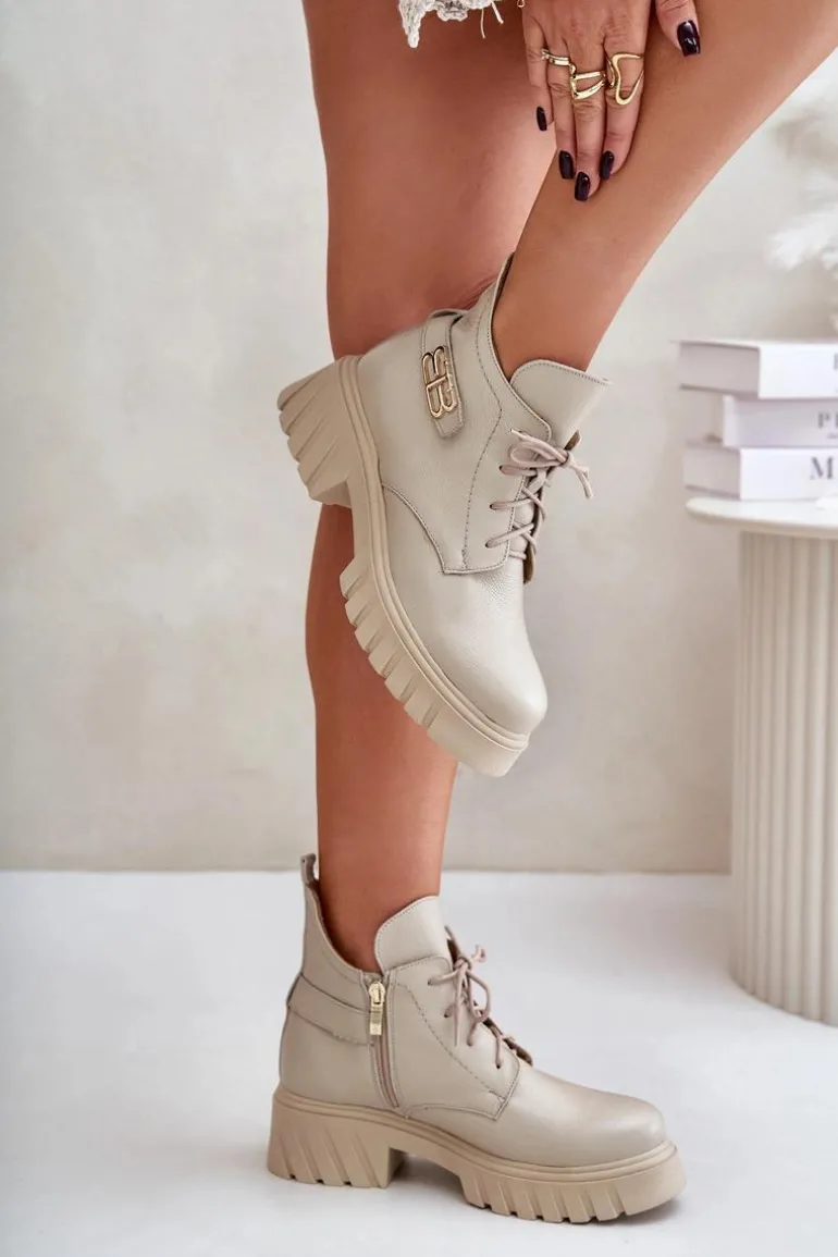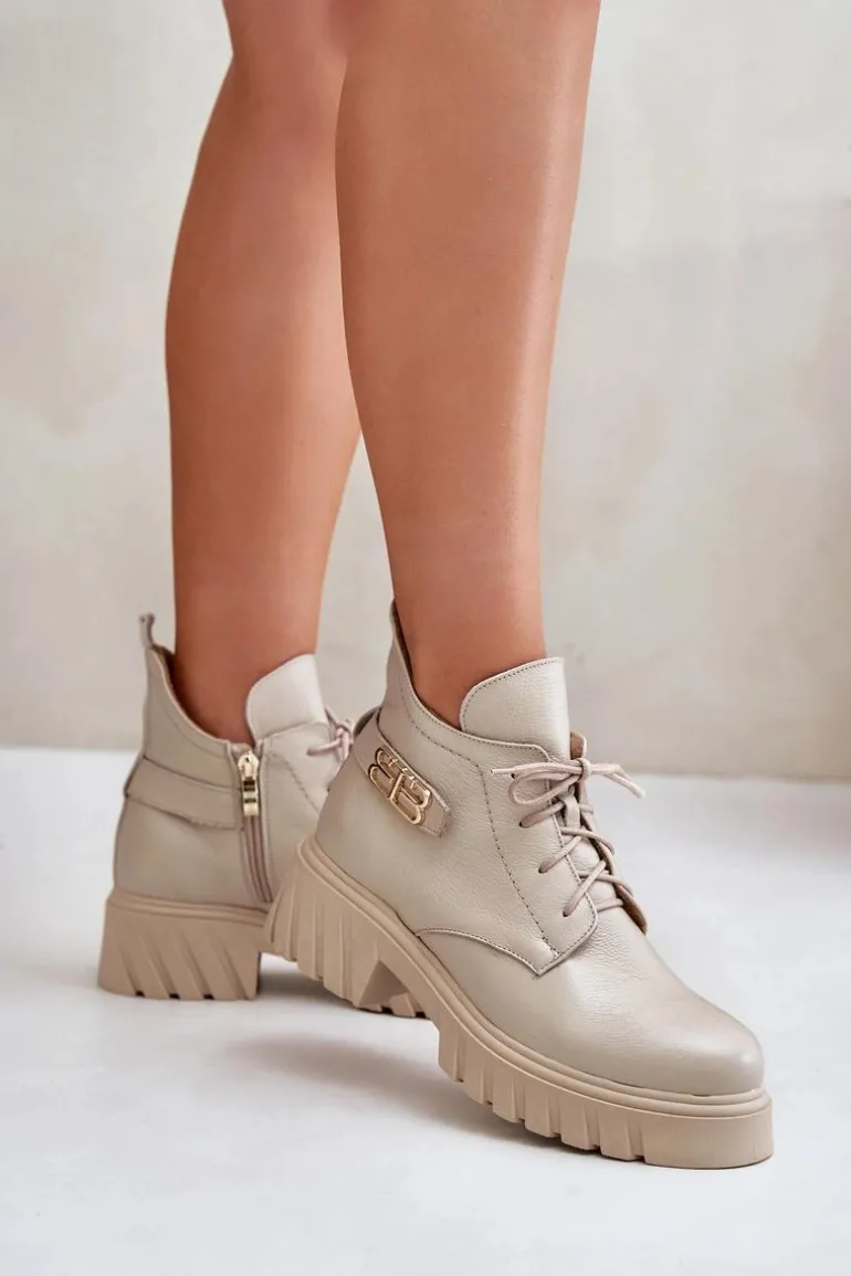 Damskie botki wykonane ze skóry naturalnej. Zapinane na zamek oraz dodatkowo posiadają sznurowanie. Noski zaokrąglone. Wnętrze zostało ocieplone miękkim filcem, który zapewnia ciepło nawet w najchłodniejsze dni. Filc nie tylko chroni przed zimnem, ale także zwiększa komfort noszenia, dzięki swojej miękkości i właściwościom izolacyjnym. To sprawia, że botki są idealnym wyborem na jesienne i zimowe miesiące, gwarantując nie tylko stylowy wygląd, ale także komfort i ochronę przed chłodem. Te botki to doskonałe połączenie klasycznego stylu i nowoczesnych rozwiązań, które sprawdzą się w różnorodnych stylizacjach, od casualowych po bardziej eleganckie. Przy wyborze rozmiaru prosimy sugerować się tabelą rozmiarów.