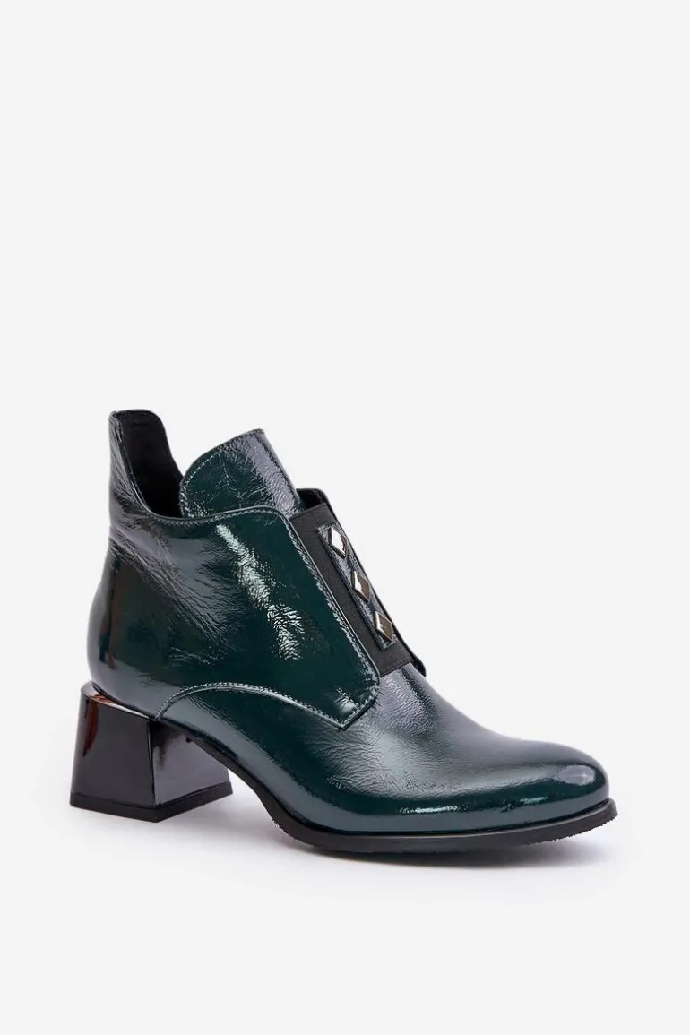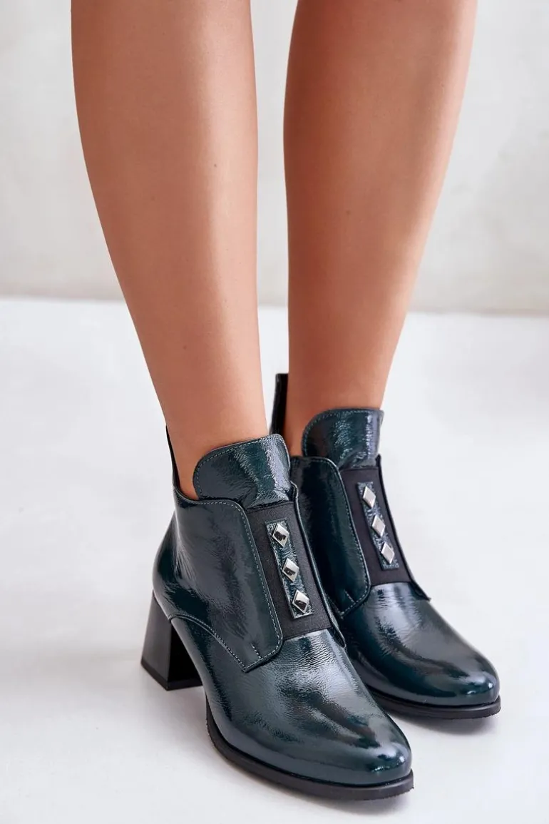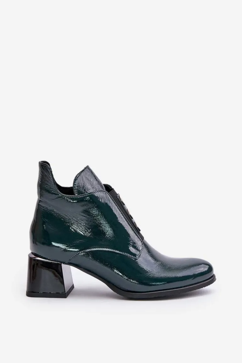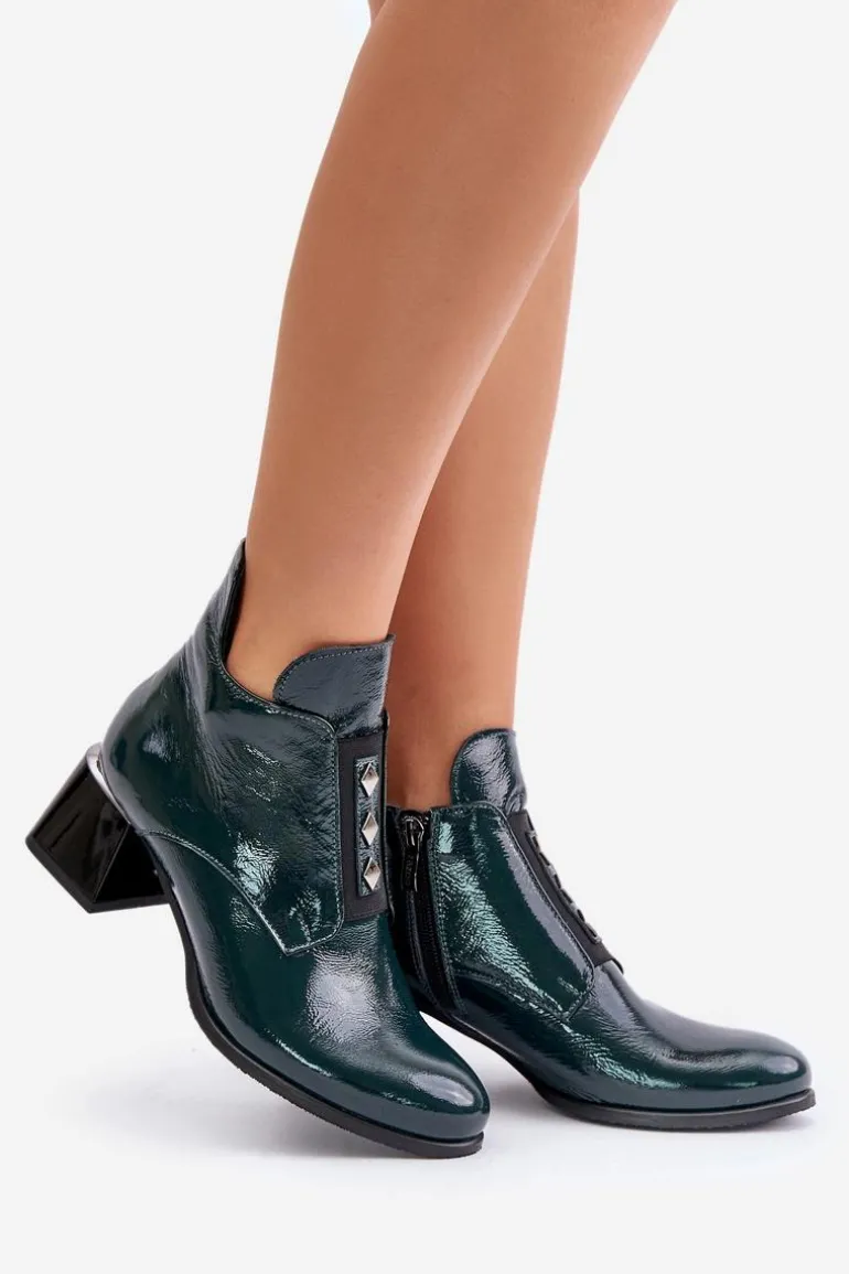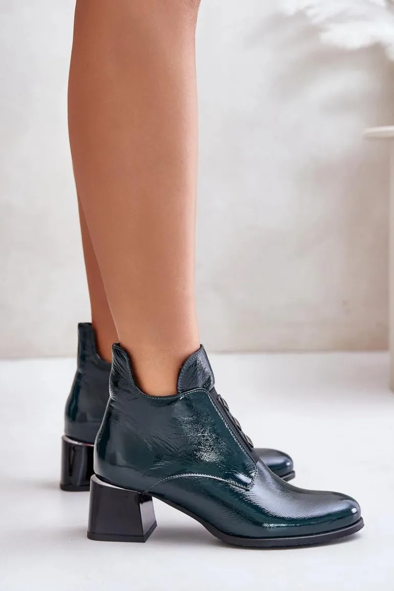 Damskie botki z cholewką za kostkę. Wykonane z wysokiej jakości skóry naturalnej. Osadzone na obcasie w postaci klocka. Ocieplenie filcem zapewni ciepło w chłodniejsze dni. Zapinane na zamek. Noski w migdał. Elegancki fason, który z pewnością dopasujesz do wielu stylizacji! Przy wyborze rozmiaru prosimy kierować się tabelą rozmiarów.