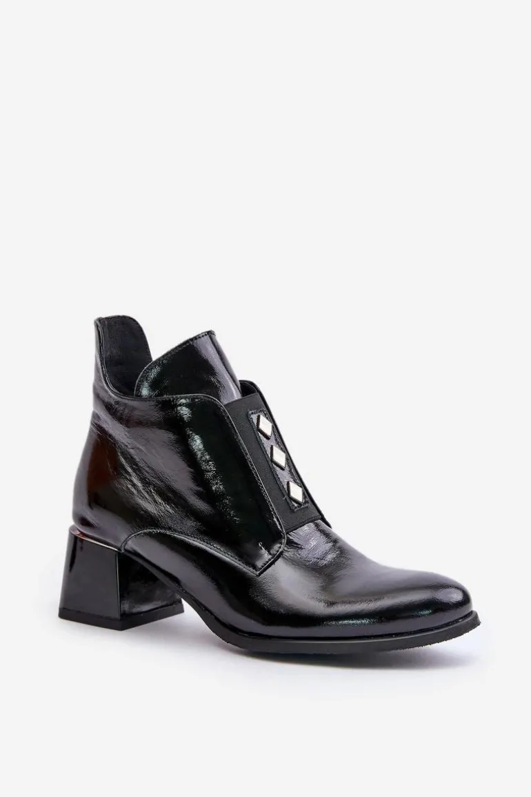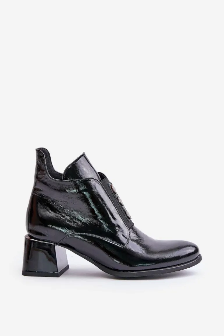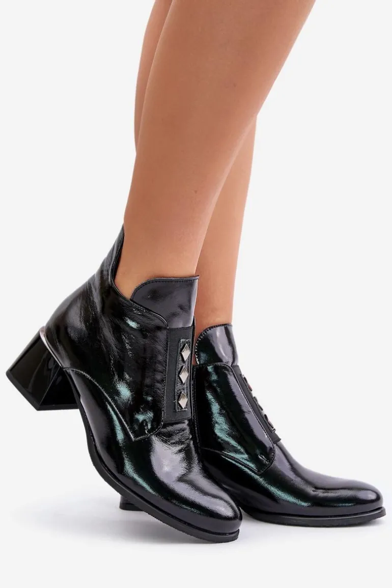 Damskie botki z cholewką za kostkę. Wykonane z wysokiej jakości skóry naturalnej. Osadzone na obcasie w postaci klocka. Ocieplenie filcem zapewni ciepło w chłodniejsze dni. Zapinane na zamek. Noski w migdał. Elegancki fason, który z pewnością dopasujesz do wielu stylizacji! Przy wyborze rozmiaru prosimy kierować się tabelą rozmiarów.