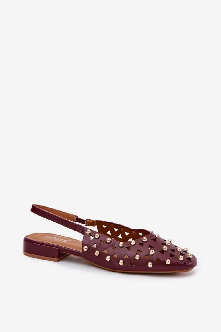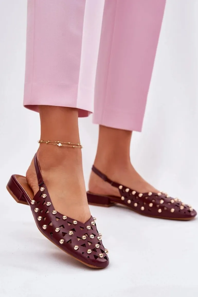 Zdobione Baleriny Na Płaskim Obcasie Bordowe Nilarisela