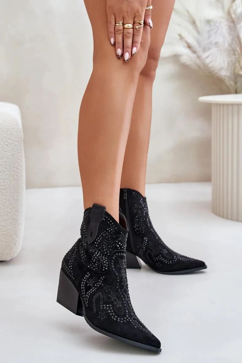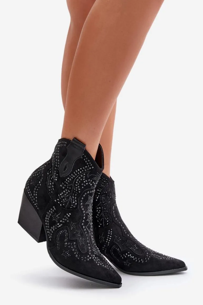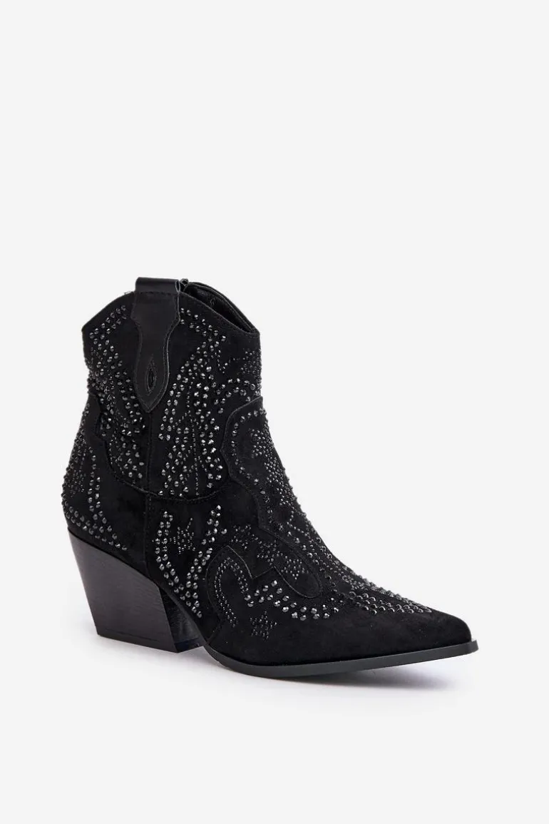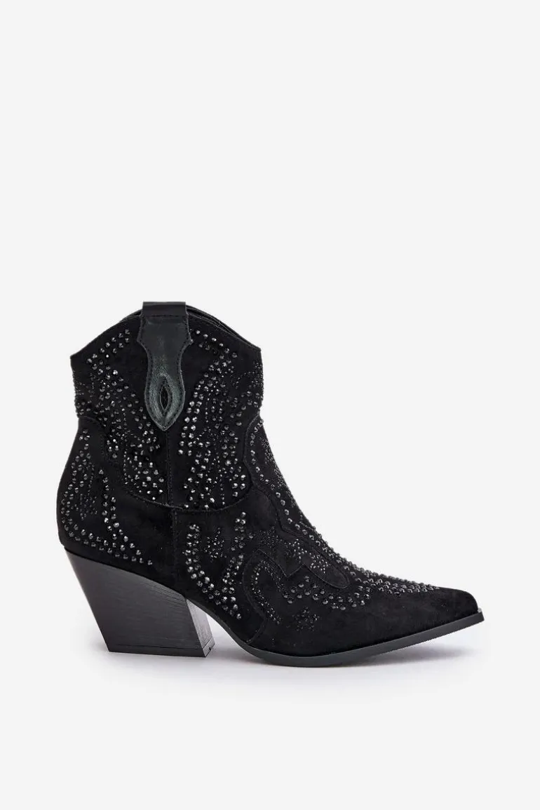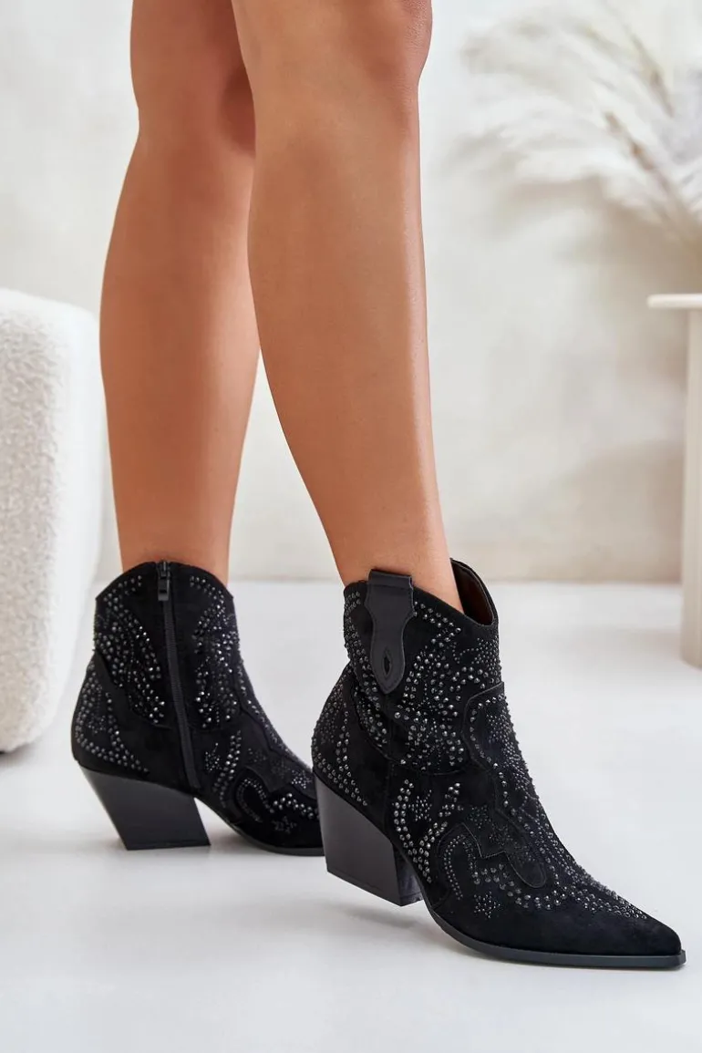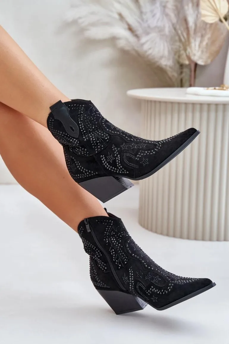 Zdobione Botki Kowbojki Na Obcasie Czarne Kaivina