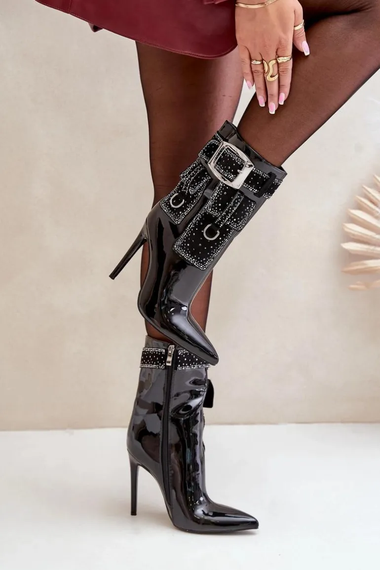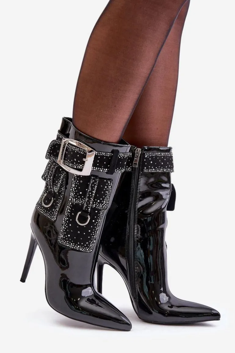 Zdobione Botki Z Lakierowanej Eko Skóry Na Szpilce Czarne Senorith
