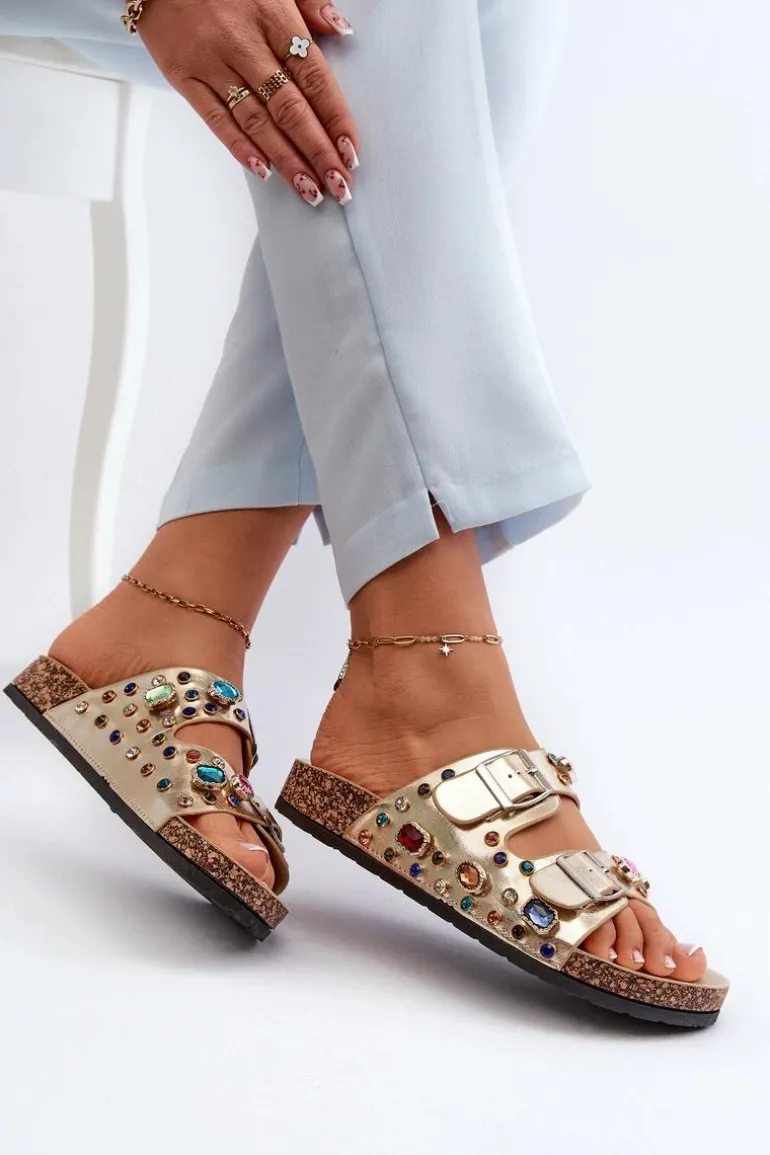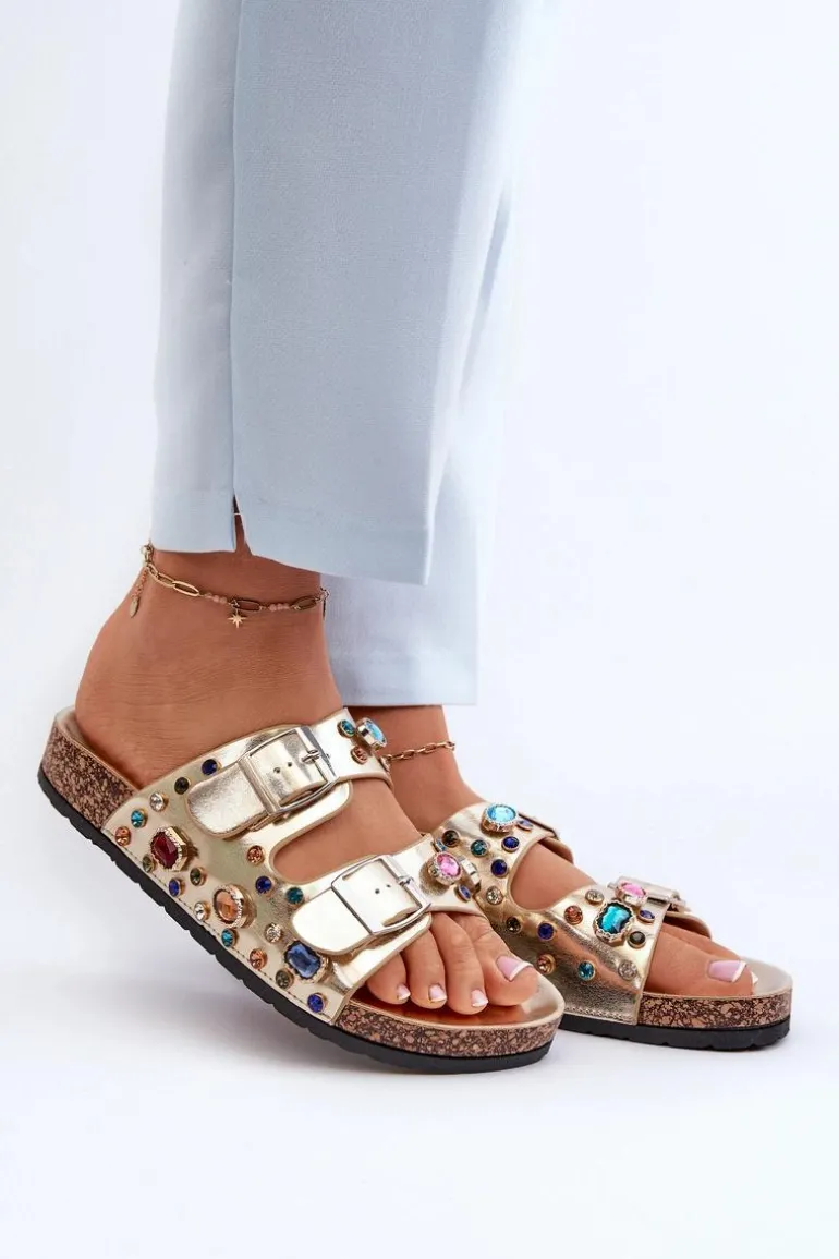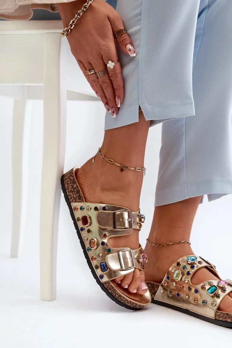 Klapki marki S.Barski wykonane z eko skóry. Ozdobione błyszczącymi kryształkami, dodają blasku każdej stylizacji. Osadzone na korkowej platformie, zapewniają stabilność i modny wygląd. Z przodu dwa regulowane paski z klamrami, które gwarantują idealne dopasowanie do stopy. To obuwie, które nie tylko przyciąga wzrok swoim wyjątkowym designem, ale także zapewnia komfort noszenia. Przy wyborze rozmiaru prosimy sugerować się tabelą rozmiarów.