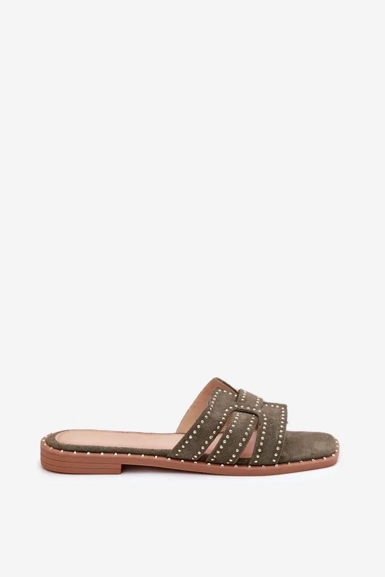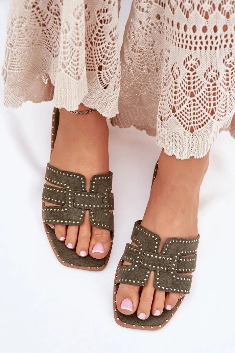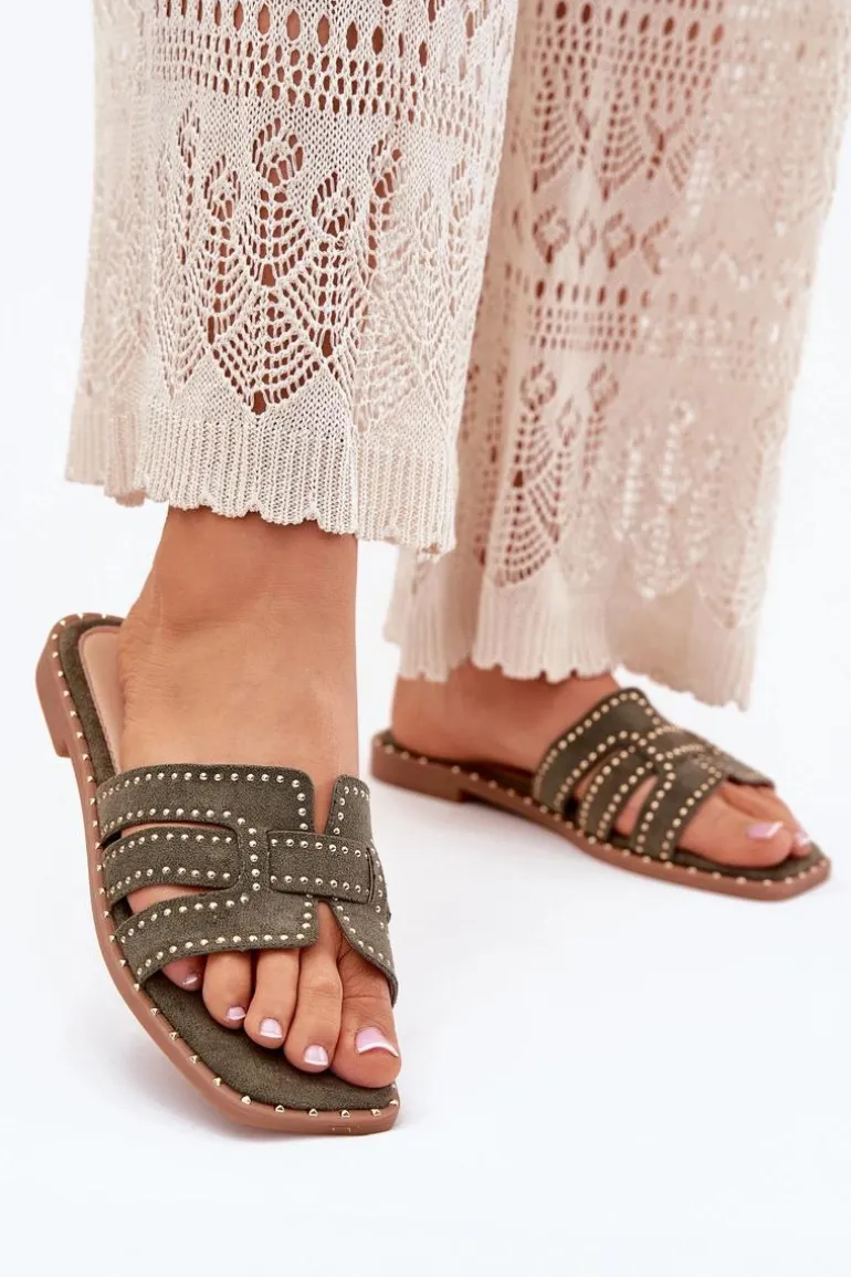 Zdobione klapki damskie wykonane z eko zamszu to elegancka i wygodna propozycja na ciepłe dni. Osadzone na płaskim obcasie, zapewniają komfort przez cały dzień. Subtelne zdobienia przyciągają wzrok, dodając butom wyjątkowego charakteru. Idealne do codziennych stylizacji, łączą funkcjonalność z modnym wyglądem. Przy wyborze rozmiaru prosimy sugerować się tabelą rozmiarów.