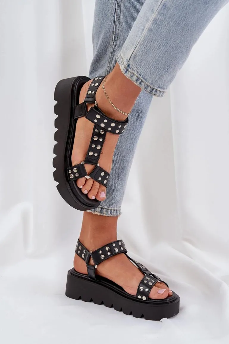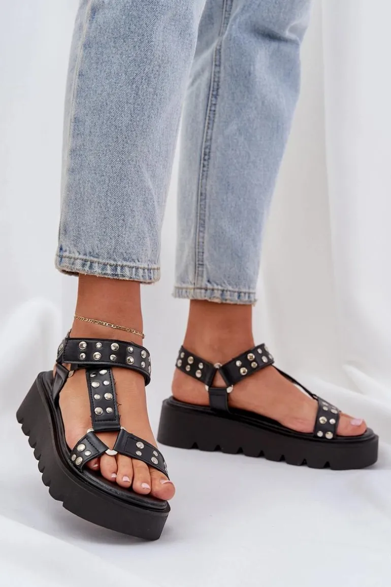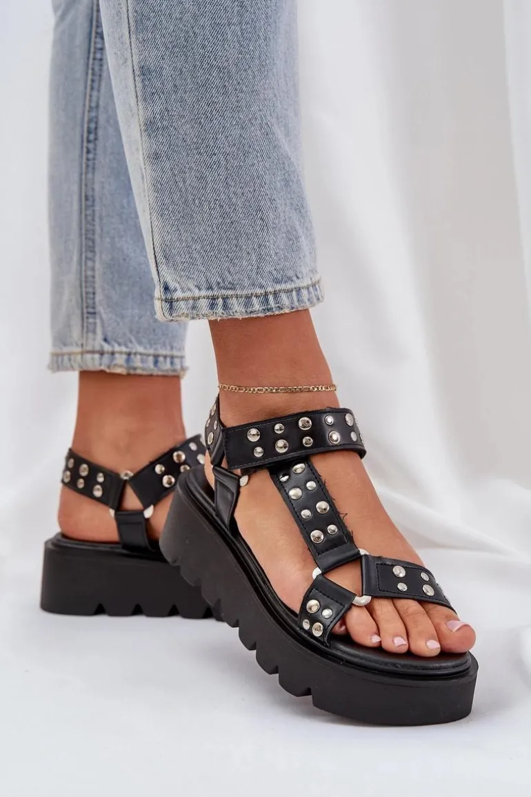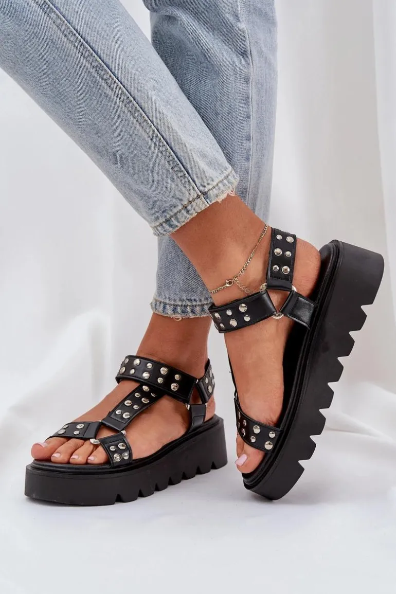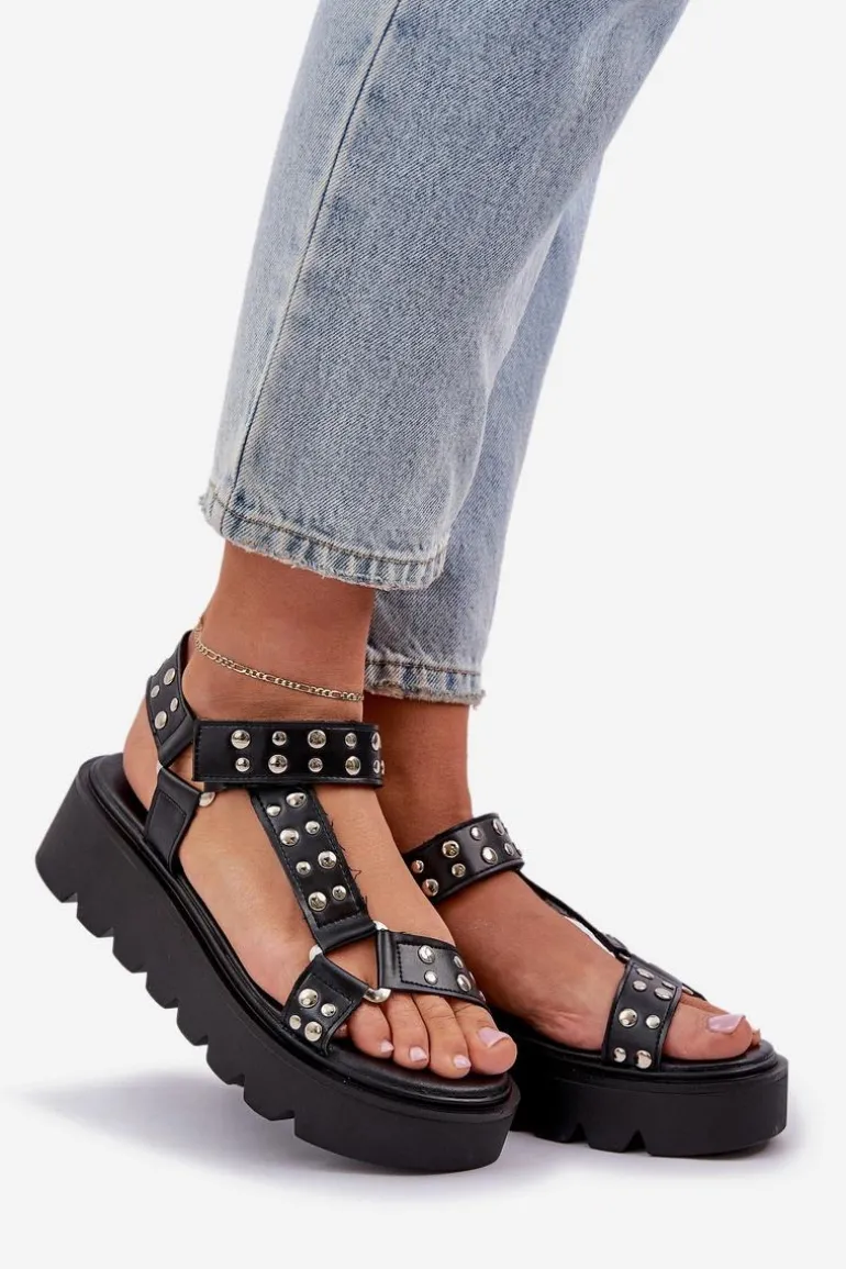 Lekkie, zdobione sandały damskie z eko skóry to świetna propozycja na ciepłe dni. Osadzone na platformie, zapewniają komfort i stabilność, dodając lekkości każdemu krokowi. Zapinane na rzep, co ułatwia ich zakładanie i dopasowanie do stopy. Zdobienia na cholewce dodają im subtelnego, modnego charakteru. Model ten doskonale dopełni Twoje letnie stylizacje! Przy wyborze rozmiaru prosimy sugerować się tabelą rozmiarów.