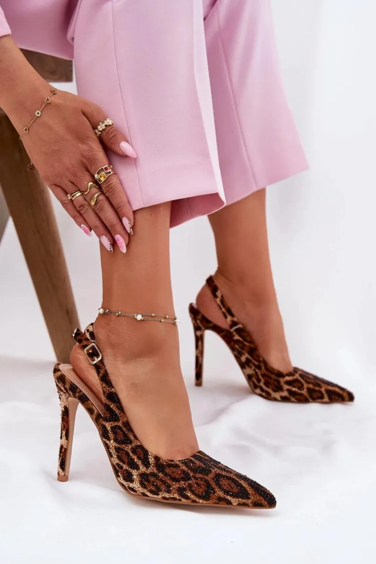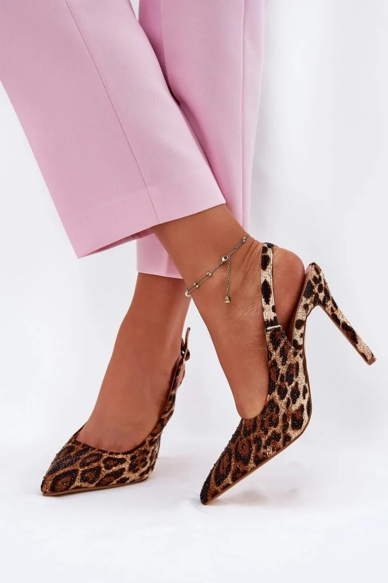 Te eleganckie sandały na szpilce z pewnością przyciągną uwagę wszystkich wokół! Noski w szpic pięknie wysmuklają nogi, a wygodne zapięcie na regulowany pasek ze sprzączką gwarantuje perfekcyjne dopasowanie. Zdobienie dodaje blasku i sprawiają, że wyróżnisz się w tłumie. To doskonałe obuwie na ważne uroczystości, przyjęcia lub romantyczne wieczory. Przy wyborze rozmiaru prosimy sugerować się tabelą rozmiarów.