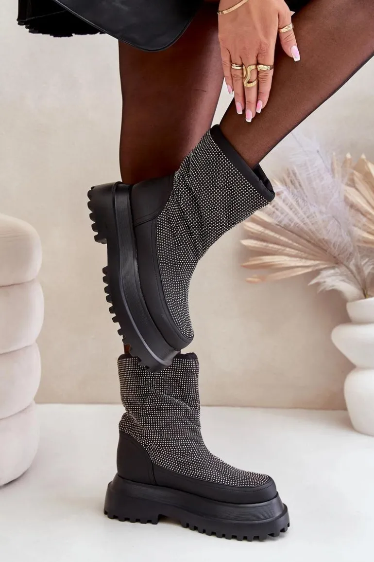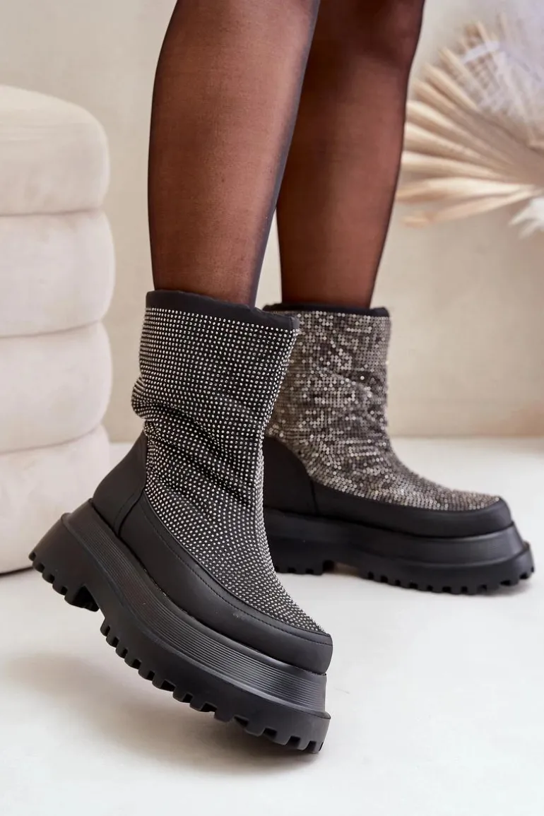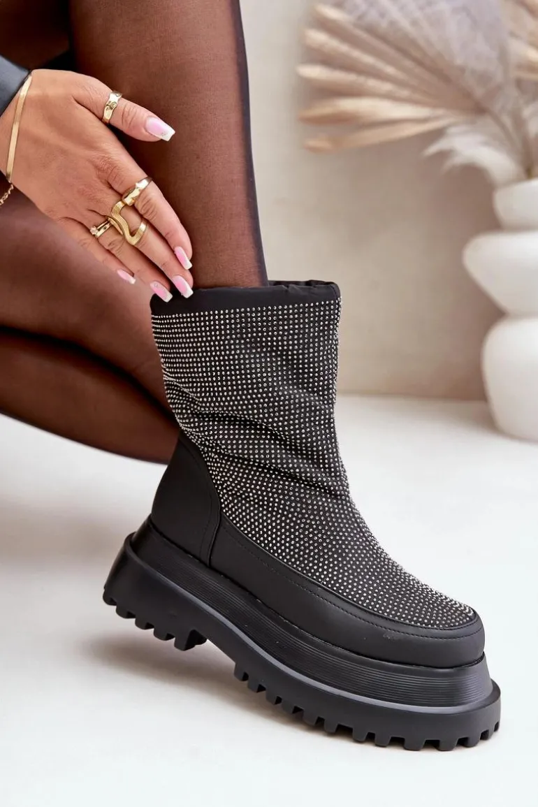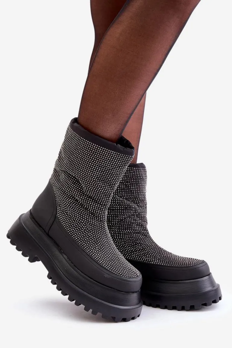 Śniegowce wykonane z materiałów odpornych na mróz i wiatr to doskonały wybór na najbardziej wymagające, zimowe dni. Osadzone na platformie z płaskim obcasem, zapewniają stabilność i komfort podczas chodzenia po zaśnieżonych powierzchniach. Błyszcząca cholewka z dekoracyjnymi detalami dodaje im modnego, przyciągającego wzrok charakteru. Górna część cholewki wykończona została praktycznym ściągaczem, który skutecznie chroni przed wiatrem i śniegiem, zapewniając dodatkowe ciepło. Te stylowe śniegowce idealnie łączą funkcjonalność z modnym wyglądem, sprawdzając się zarówno w miejskich stylizacjach, jak i podczas zimowych spacerów. Przy wyborze rozmiaru prosimy sugerować się tabelą rozmiarów.